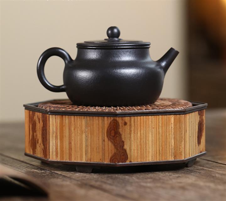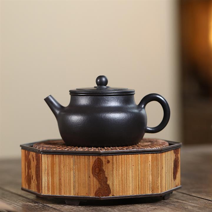300cc原礦黑料六方金鐘滿彩刻長城泡茶壺POT9517