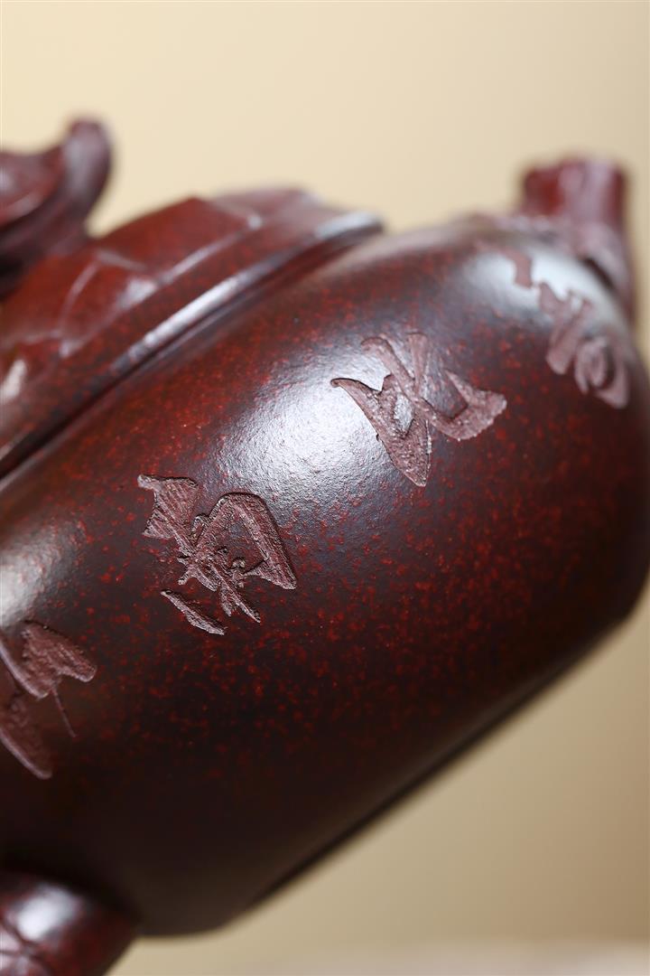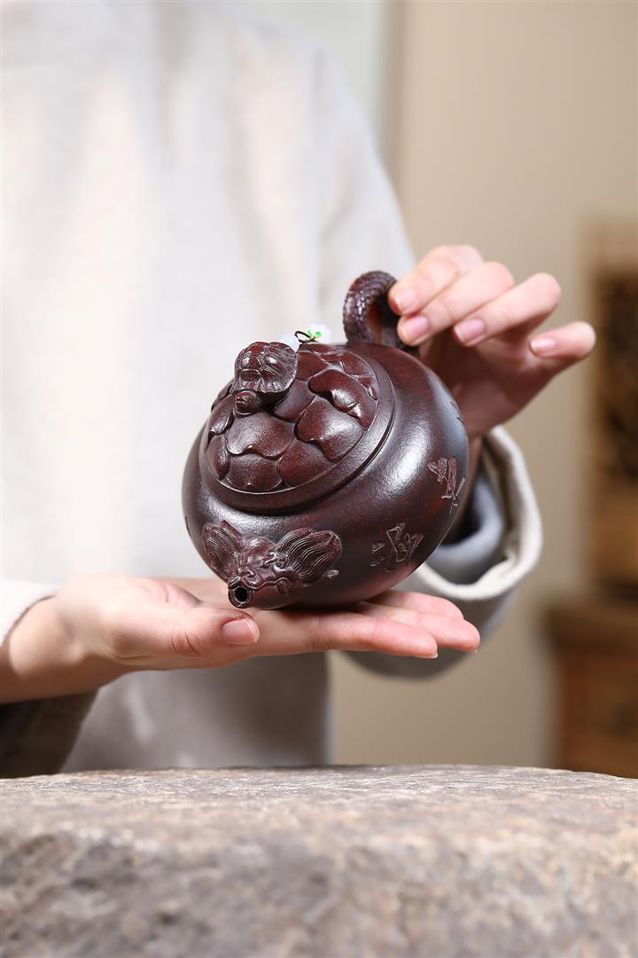 390cc原礦老紫泥六方福獅獻瑞茶壺POT9525