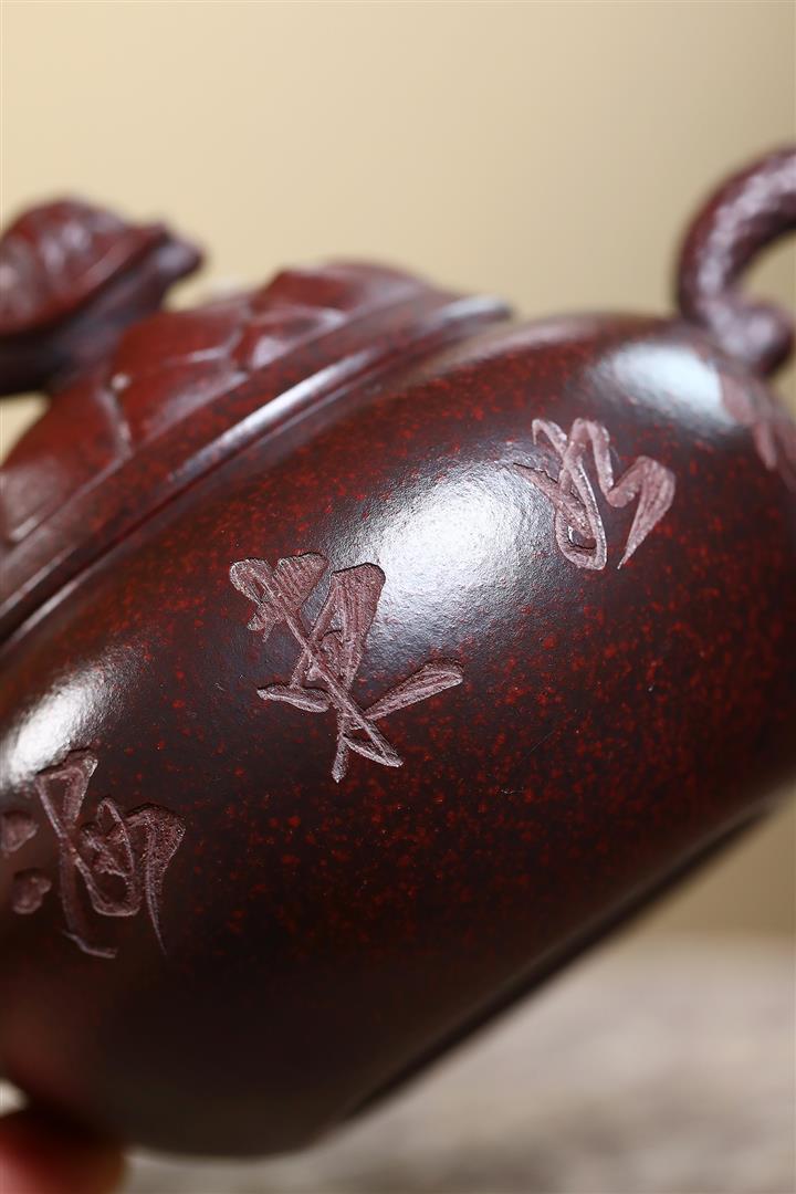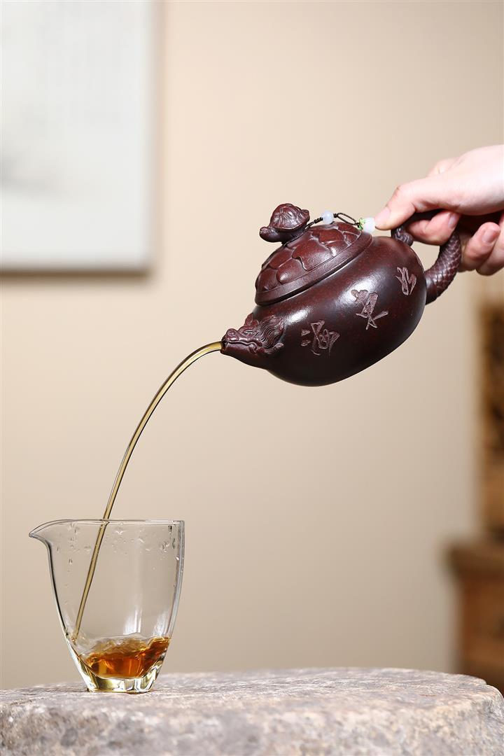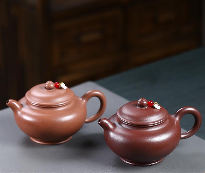 【泥料特點】砂土氣重,似淳實農民,日久使用,漸露鋒芒,養成變化,溫潤莊重。紫砂是壹種雙重氣孔結構的多孔性材質,氣孔微細,密度高。用紫砂壺沏茶,不失原味,且香不渙散,得茶之真香真味。紫砂使用越久,壺身色澤越發光亮照人,氣韻溫雅。紫砂壺長久使用器身會因撫摸擦拭,變得越發溫潤光澤。