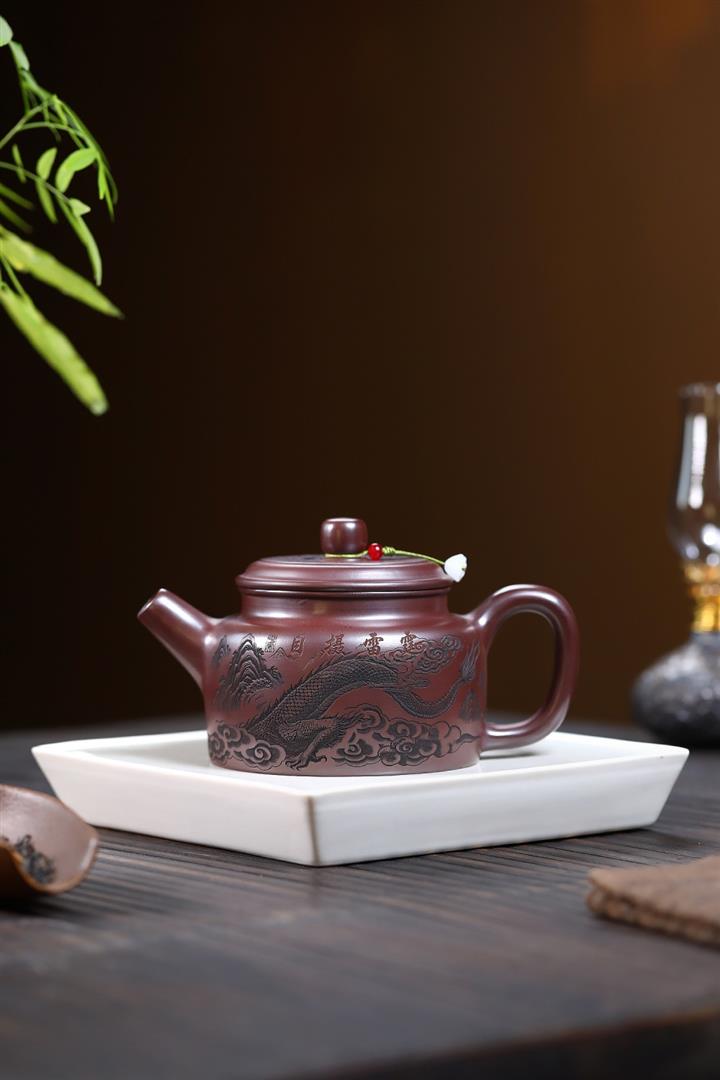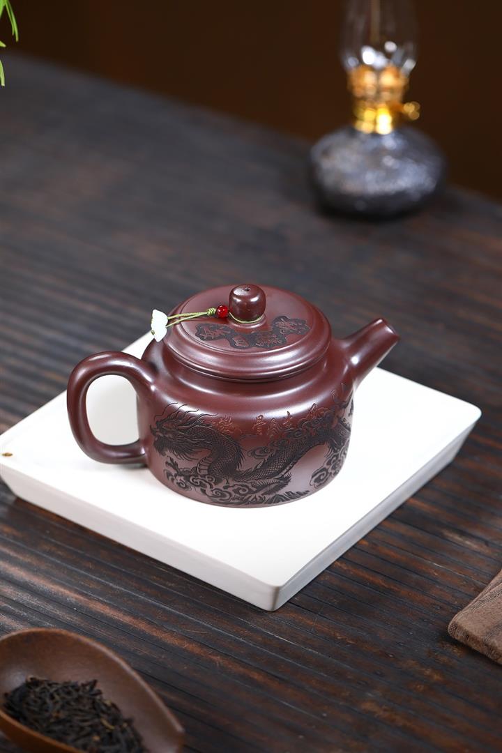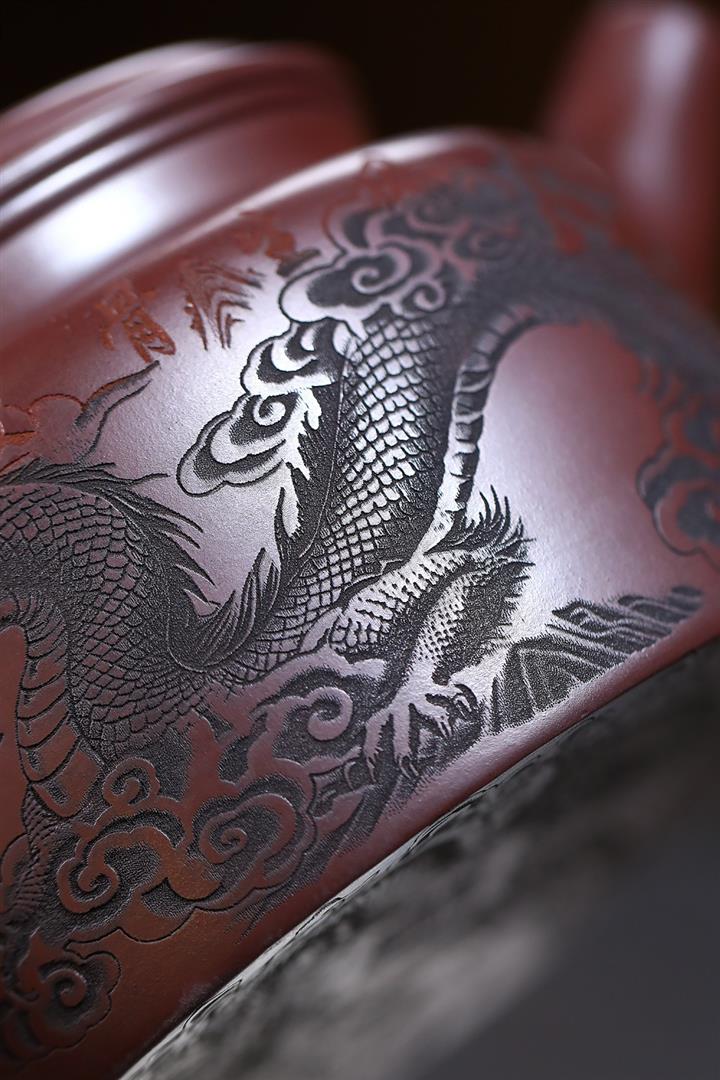 480cc原礦紫朱泥龍紋德鐘泡茶壺POT9520