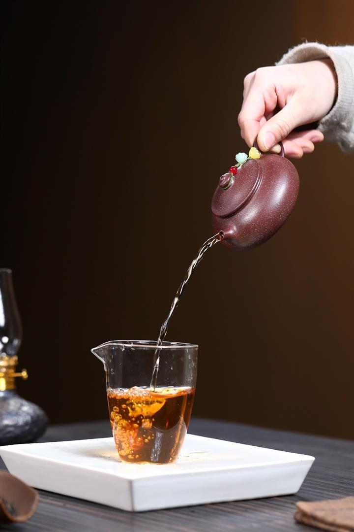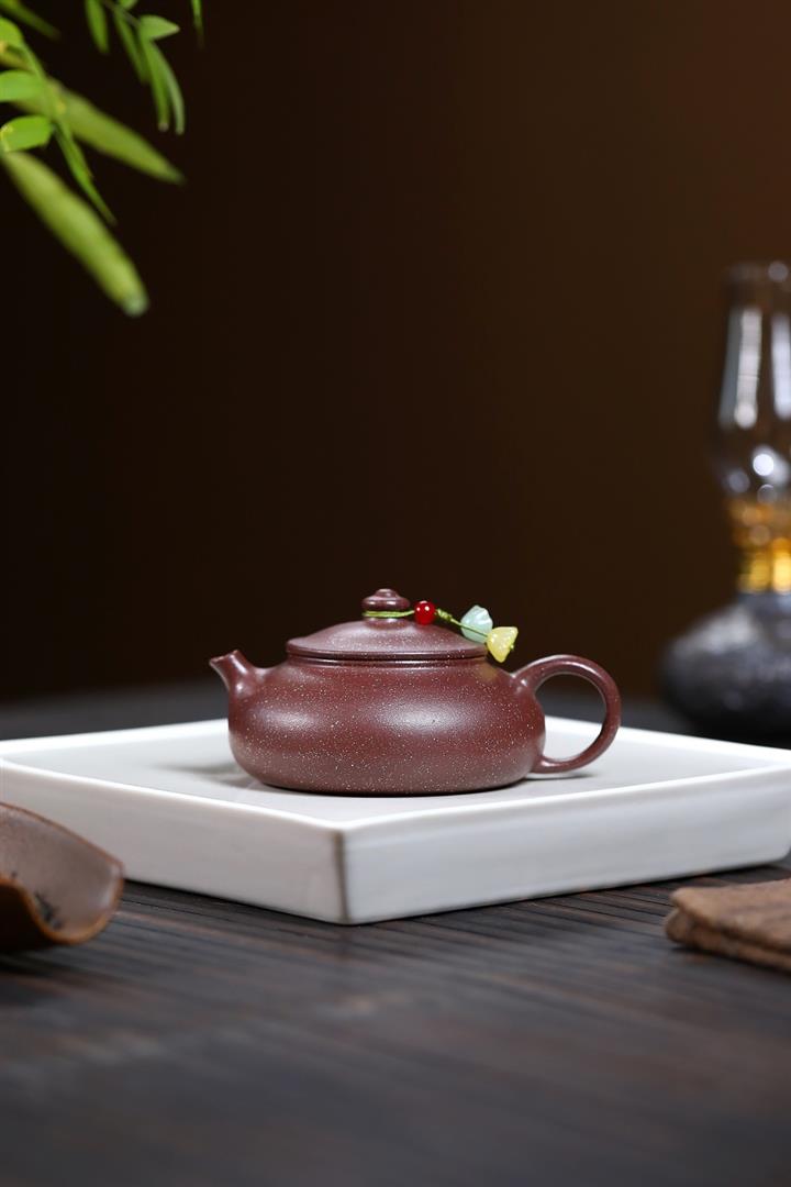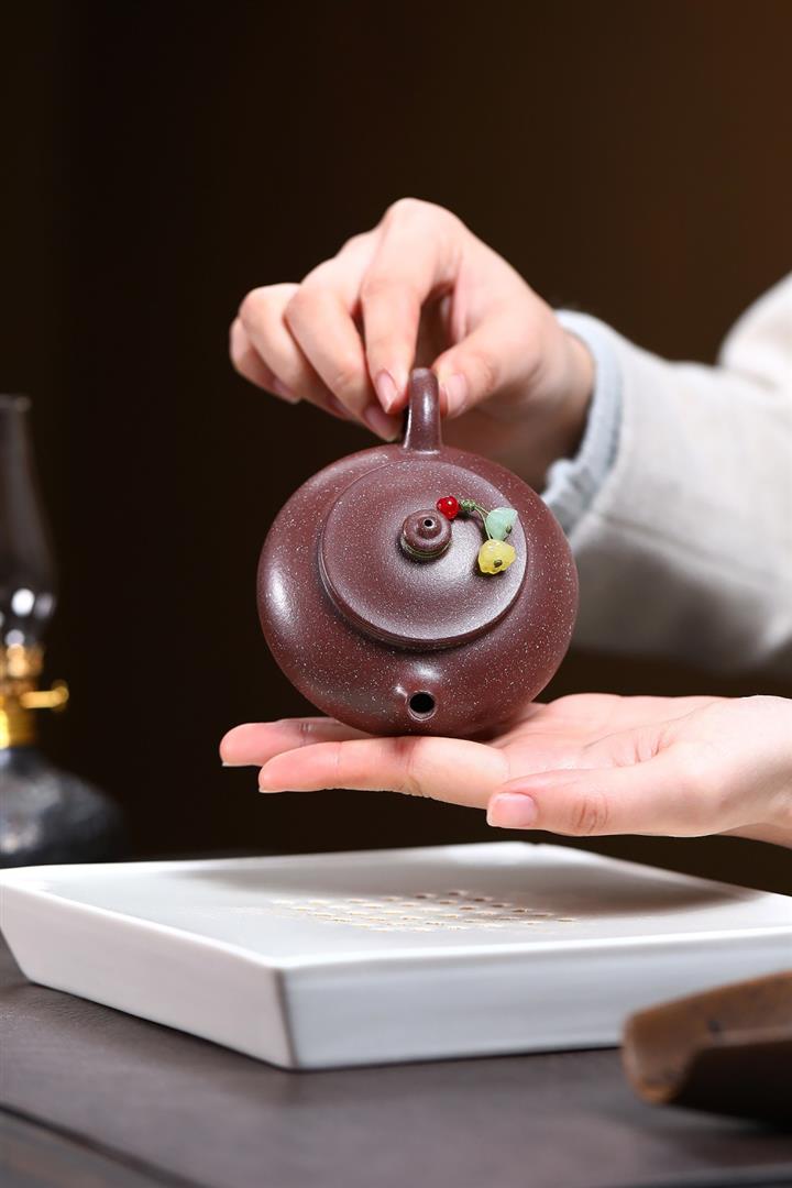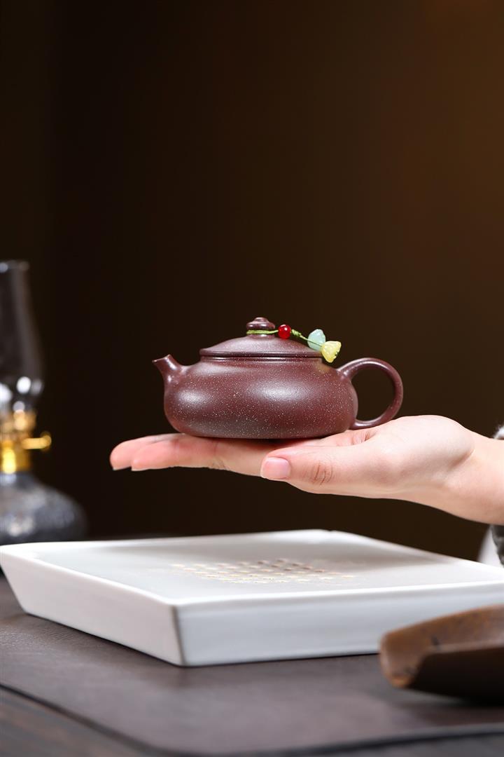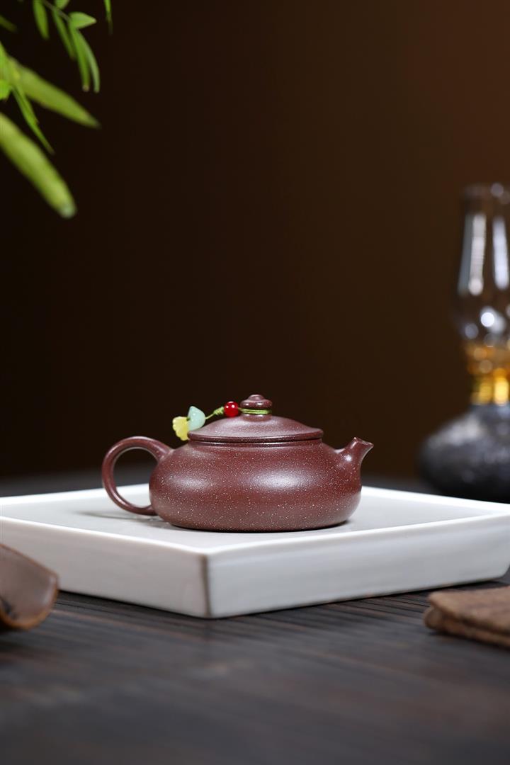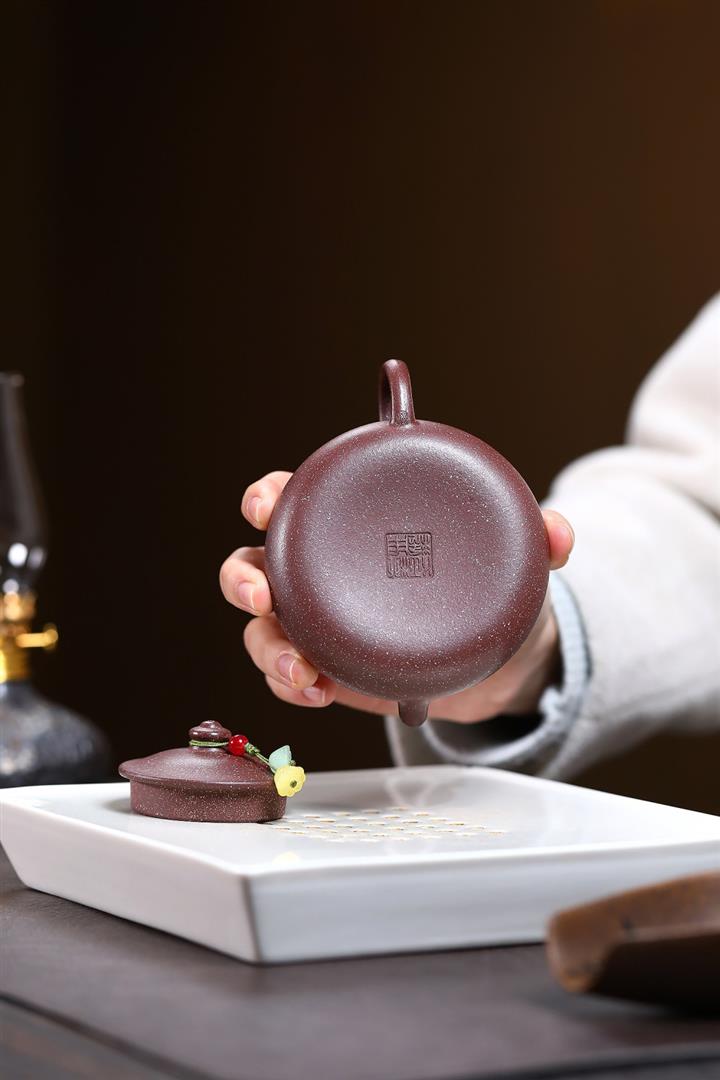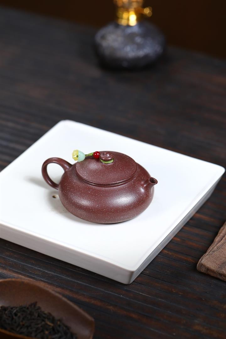 【泥料特點】砂土氣重,似淳實農民,日久使用,漸露鋒芒,養成變化,溫潤莊重。紫砂是壹種雙重氣孔結構的多孔性材質,氣孔微細,密度高。用紫砂壺沏茶,不失原味,且香不渙散,得茶之真香真味。紫砂使用越久,壺身色澤越發光亮照人,氣韻溫雅。紫砂壺長久使用器身會因撫摸擦拭,變得越發溫潤光澤。