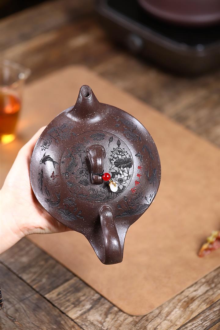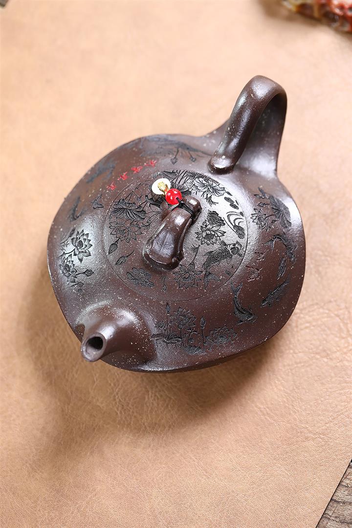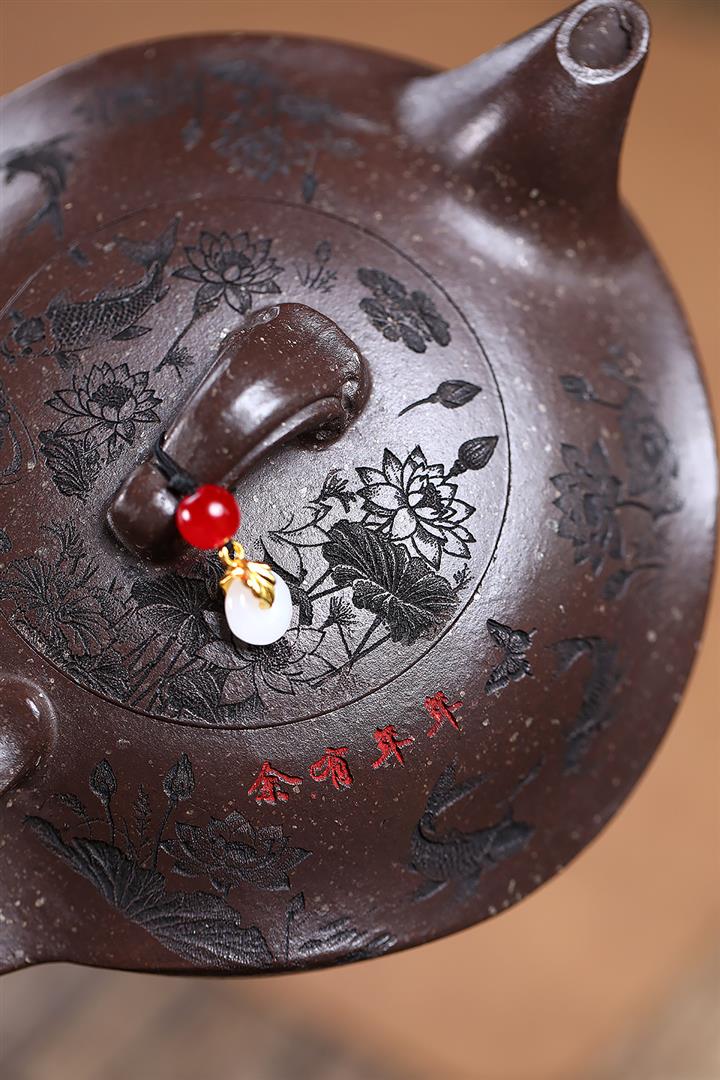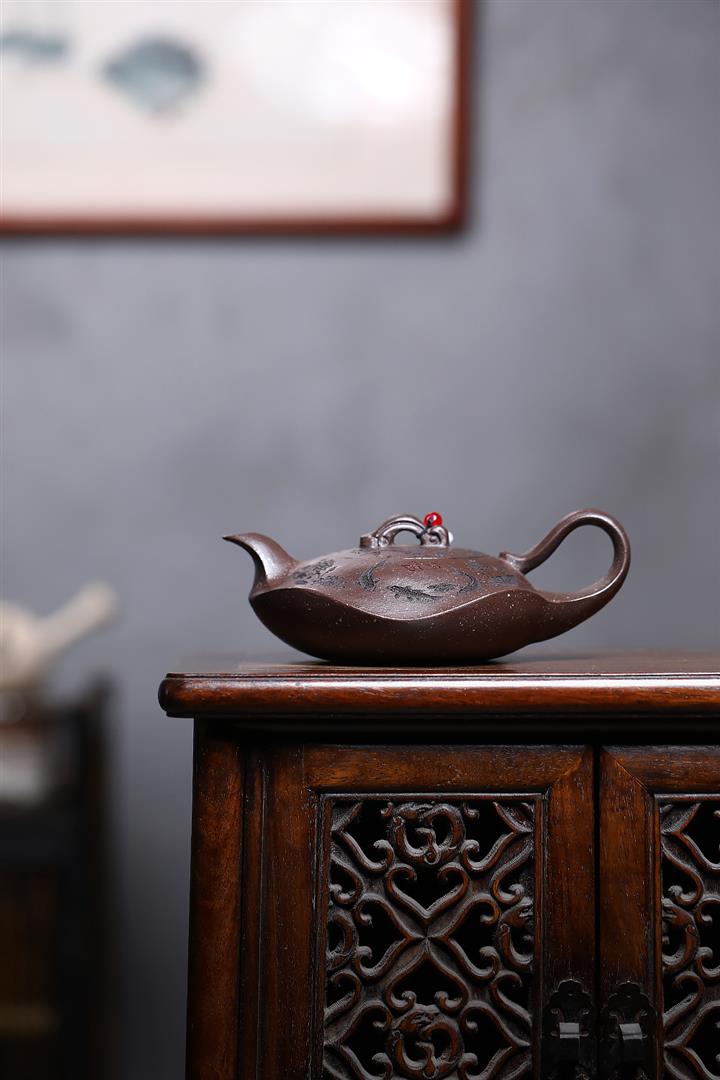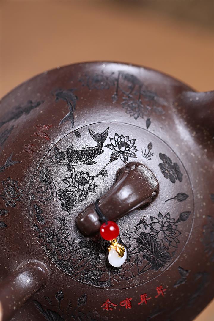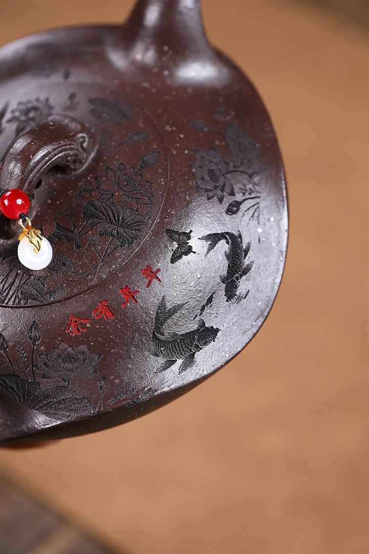 230cc原礦紫泥刻繪百福德鐘泡茶壺POT9529