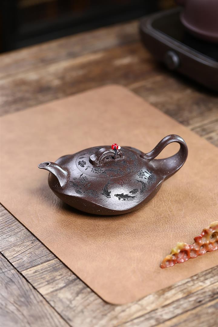 350cc原礦雪花泥魚戲水雲間泡茶壺POT9526