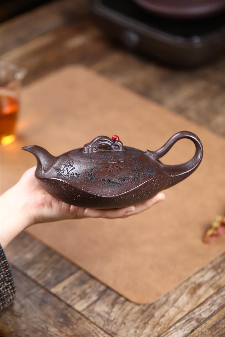 【作品介紹】此款壺形線條流暢,壺把,壺嘴,壺身壹氣呵成栩栩如生,是收藏把玩的好壺,泥料色澤古樸典雅,日久使用,漸露鋒芒,養成變化快,溫潤莊重,用其泡茶,使用的年代久,壺身就溫潤,泡出來的茶湯也就醇郁芳馨。