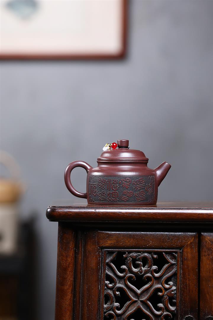 230cc原礦紫泥刻繪百福德鐘泡茶壺POT9529
