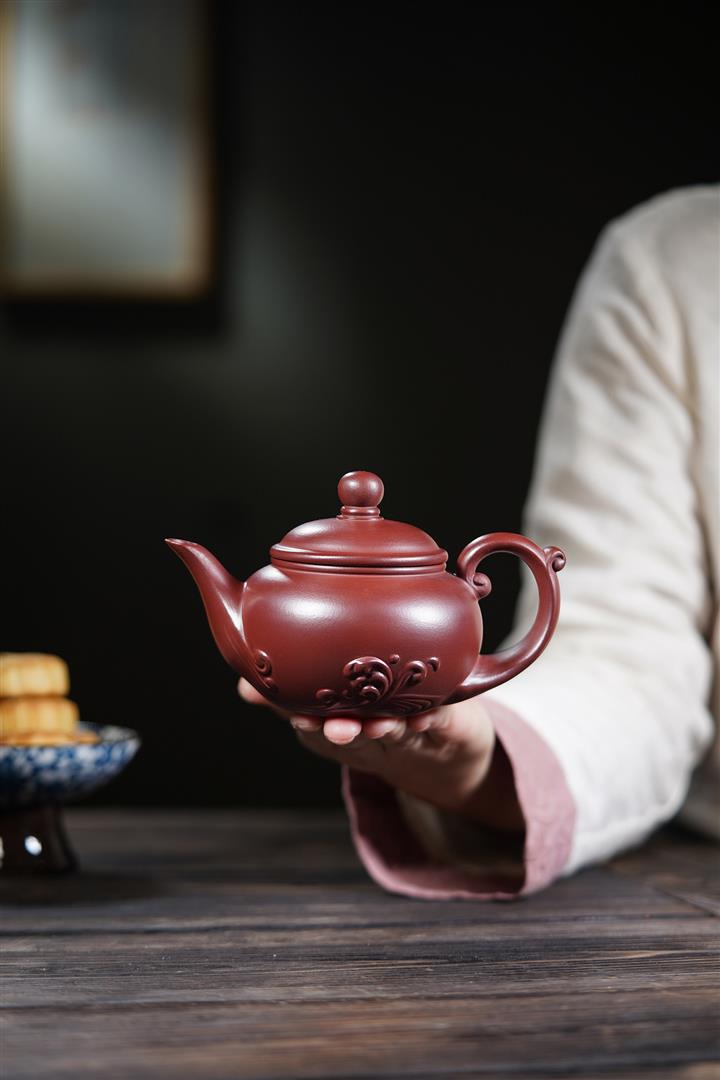 【泥料特點】砂土氣重,似淳實農民,日久使用,漸露鋒芒,養成變化,溫潤莊重。紫砂是壹種雙重氣孔結構的多孔性材質,氣孔微細,密度高。用紫砂壺沏茶,不失原味,且香不渙散,得茶之真香真味。紫砂使用越久,壺身色澤越發光亮照人,氣韻溫雅。紫砂壺長久使用器身會因撫摸擦拭,變得越發溫潤光澤。