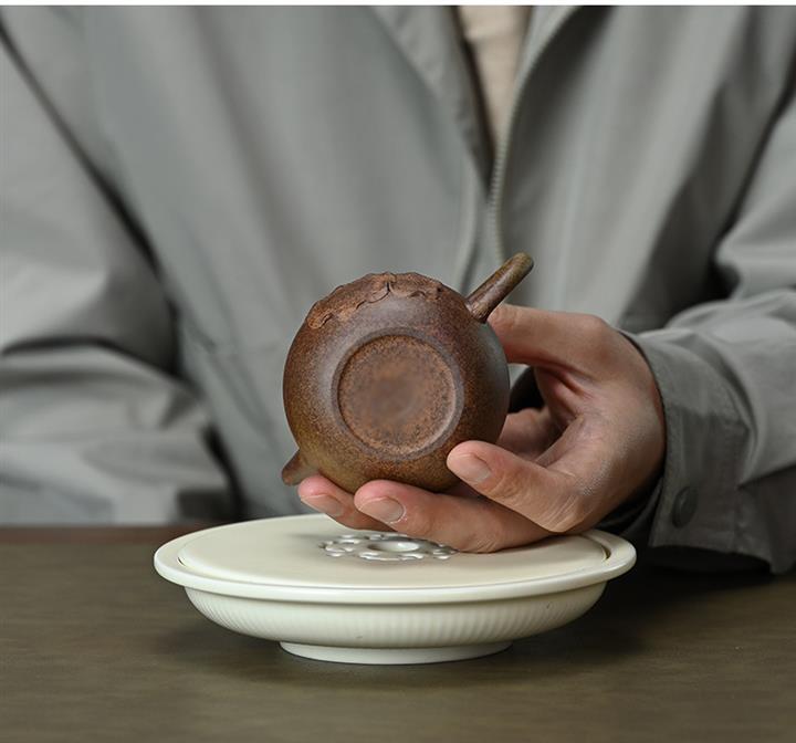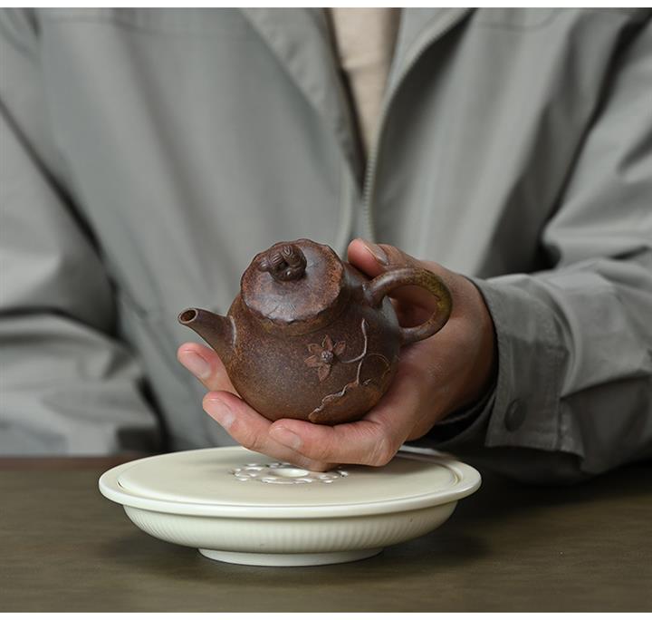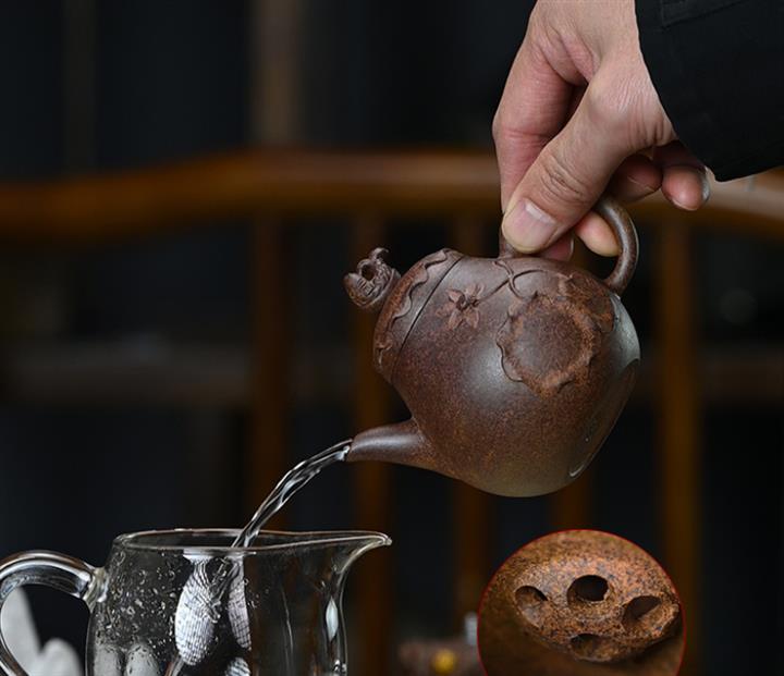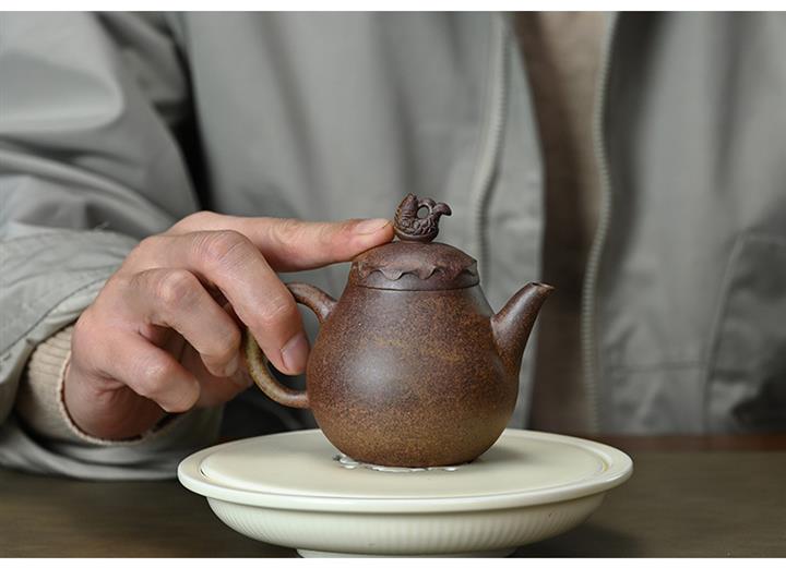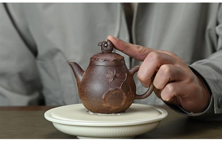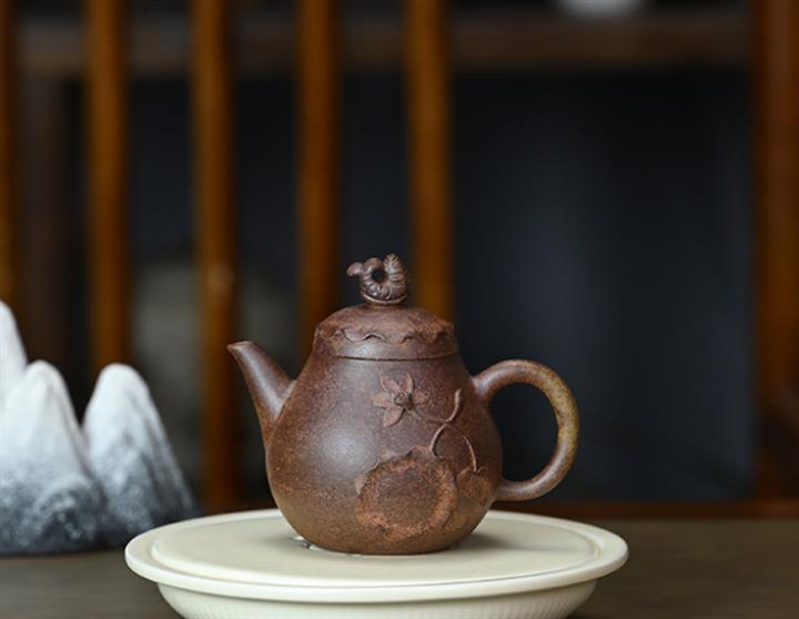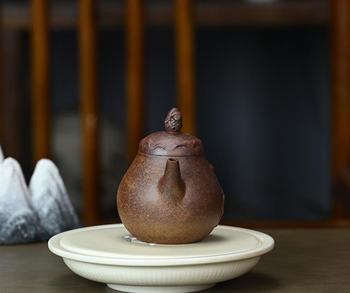 【泥料特點】砂土氣重,似淳實農民,日久使用,漸露鋒芒,養成變化,溫潤莊重。紫砂是壹種雙重氣孔結構的多孔性材質,氣孔微細,密度高。用紫砂壺沏茶,不失原味,且香不渙散,得茶之真香真味。紫砂使用越久,壺身色澤越發光亮照人,氣韻溫雅。紫砂壺長久使用器身會因撫摸擦拭,變得越發溫潤光澤。