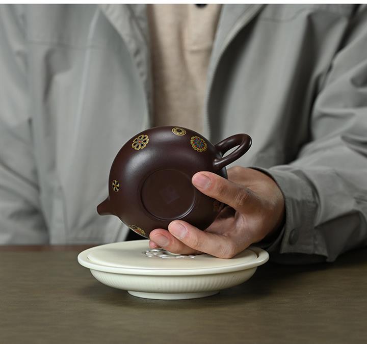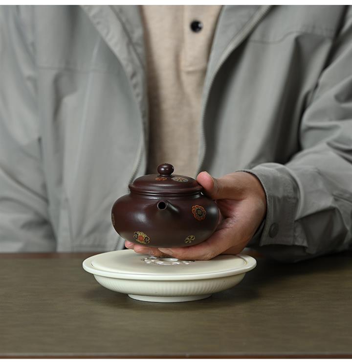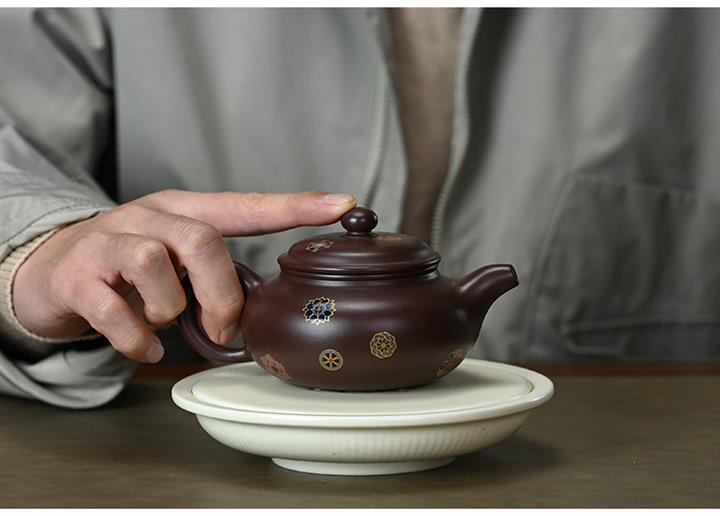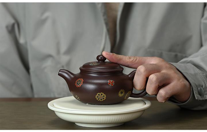 【泥料特點】砂土氣重,似淳實農民,日久使用,漸露鋒芒,養成變化,溫潤莊重。紫砂是壹種雙重氣孔結構的多孔性材質,氣孔微細,密度高。用紫砂壺沏茶,不失原味,且香不渙散,得茶之真香真味。紫砂使用越久,壺身色澤越發光亮照人,氣韻溫雅。紫砂壺長久使用器身會因撫摸擦拭,變得越發溫潤光澤。
