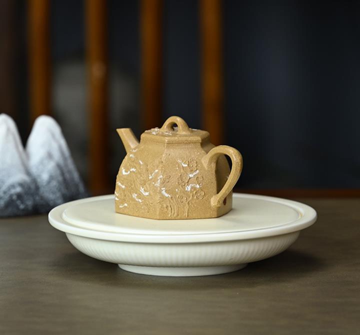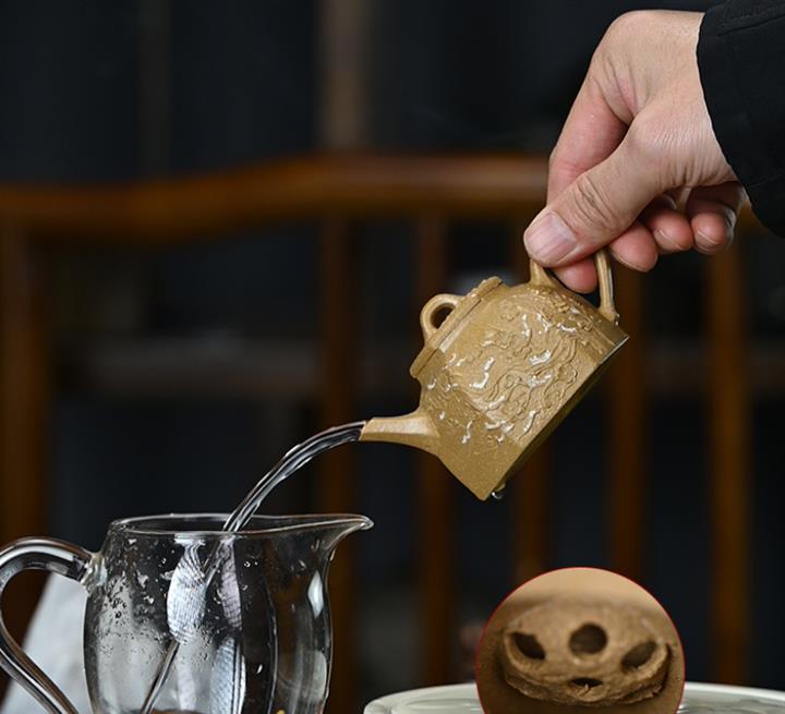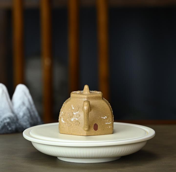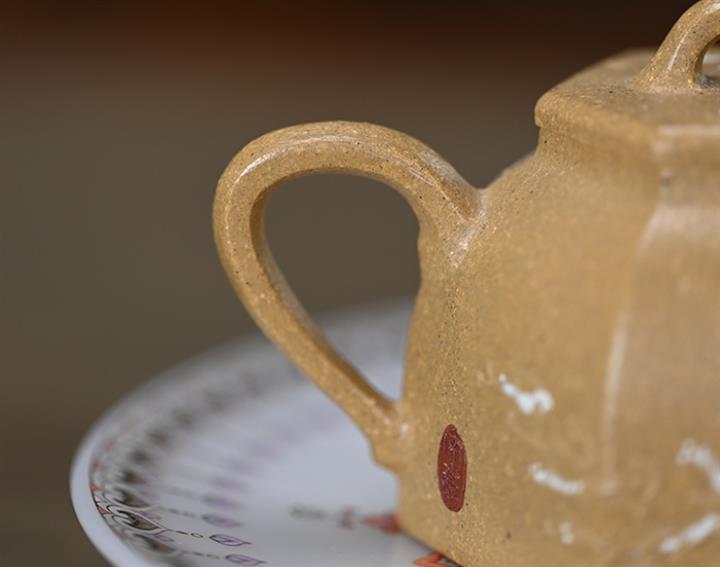【泥料特點】砂土氣重,似淳實農民,日久使用,漸露鋒芒,養成變化,溫潤莊重。紫砂是壹種雙重氣孔結構的多孔性材質,氣孔微細,密度高。用紫砂壺沏茶,不失原味,且香不渙散,得茶之真香真味。紫砂使用越久,壺身色澤越發光亮照人,氣韻溫雅。紫砂壺長久使用器身會因撫摸擦拭,變得越發溫潤光澤。
