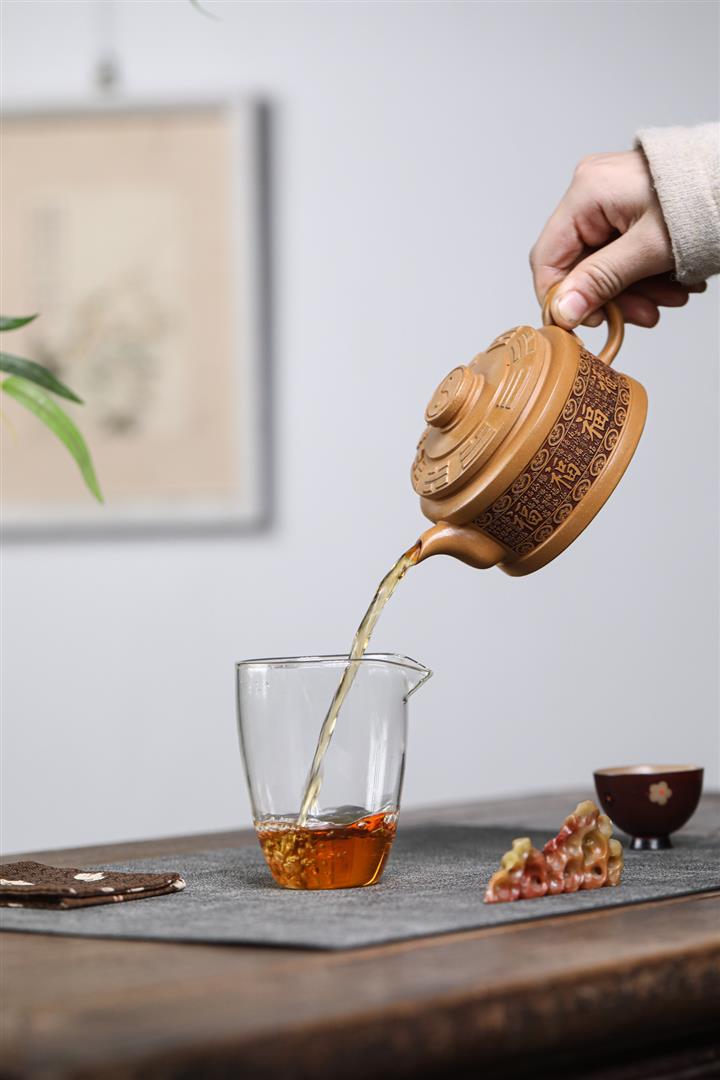 【泥料特點】砂土氣重,似淳實農民,日久使用,漸露鋒芒,養成變化,溫潤莊重。紫砂是壹種雙重氣孔結構的多孔性材質,氣孔微細,密度高。用紫砂壺沏茶,不失原味,且香不渙散,得茶之真香真味。紫砂使用越久,壺身色澤越發光亮照人,氣韻溫雅。紫砂壺長久使用器身會因撫摸擦拭,變得越發溫潤光澤。