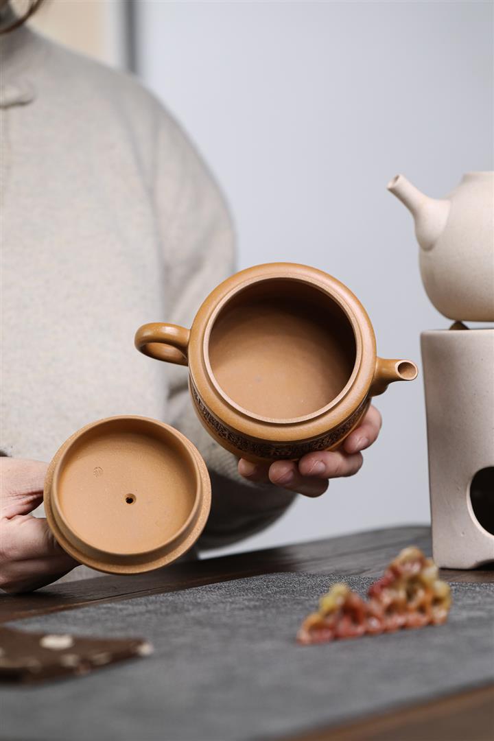 【作品介紹】此款壺形線條流暢,壺把,壺嘴,壺身壹氣呵成栩栩如生,是收藏把玩的好壺,泥料色澤古樸典雅,日久使用,漸露鋒芒,養成變化快,溫潤莊重,用其泡茶,使用的年代久,壺身就溫潤,泡出來的茶湯也就醇郁芳馨。
