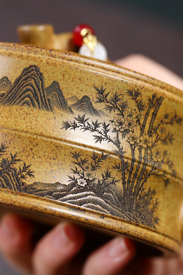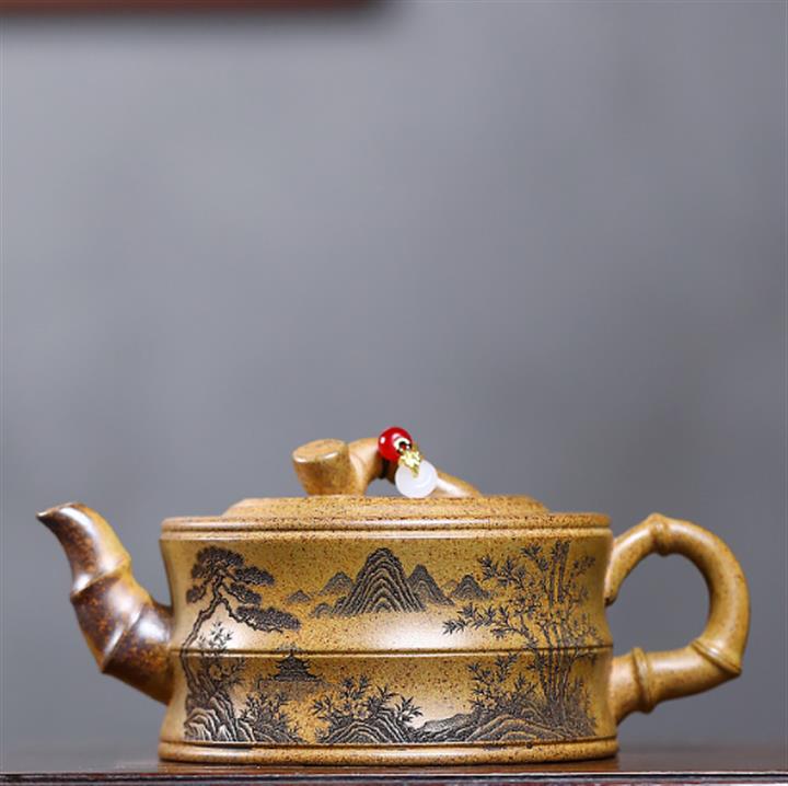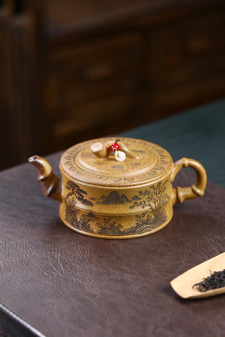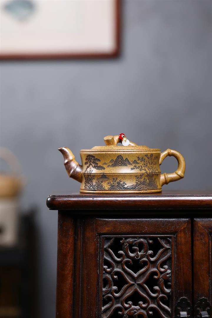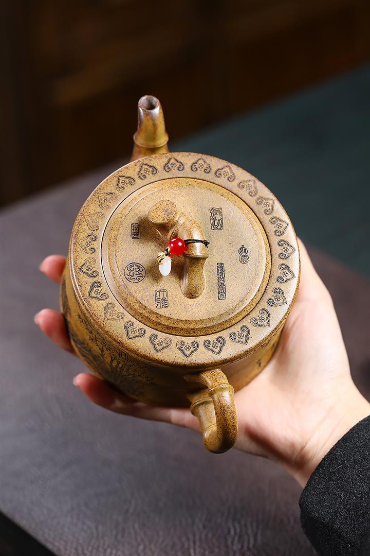 【作品介紹】此款壺形線條流暢,壺把,壺嘴,壺身壹氣呵成栩栩如生,是收藏把玩的好壺,泥料色澤古樸典雅,日久使用,漸露鋒芒,養成變化快,溫潤莊重,用其泡茶,使用的年代久,壺身就溫潤,泡出來的茶湯也就醇郁芳馨。