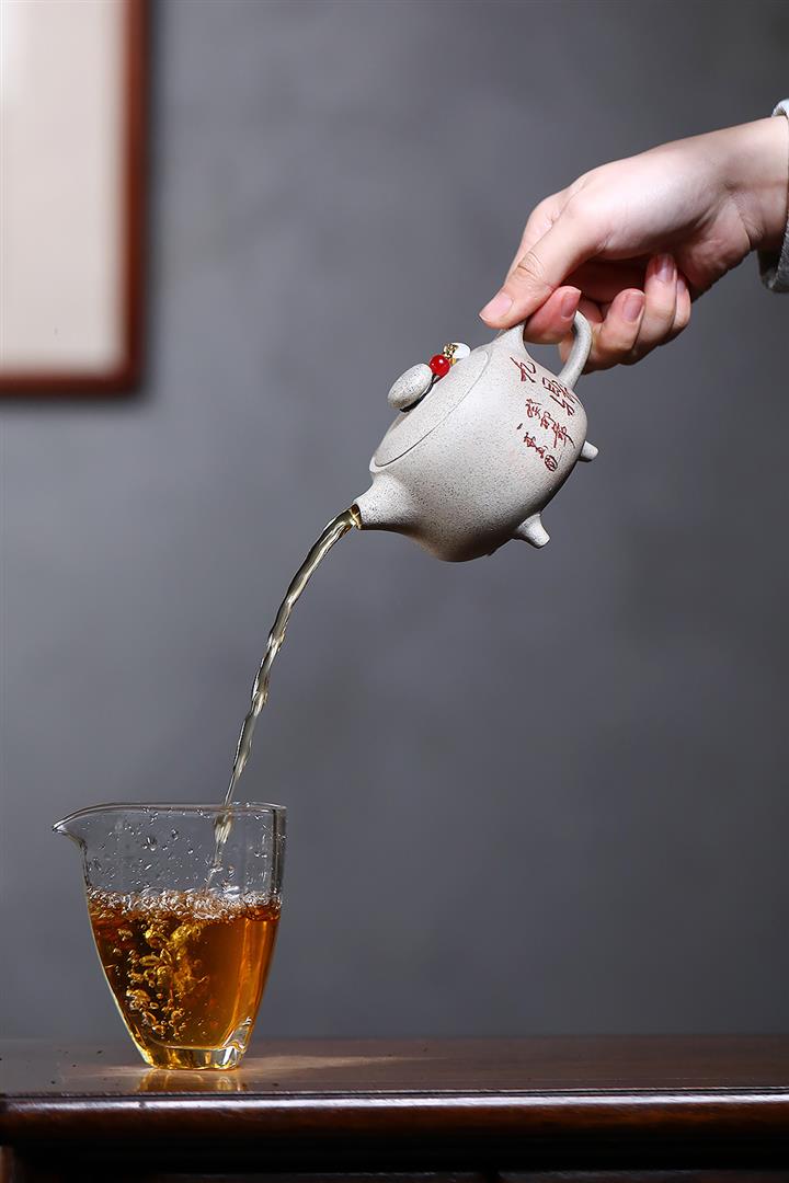 【作品介紹】此款壺形線條流暢,壺把,壺嘴,壺身壹氣呵成栩栩如生,是收藏把玩的好壺,泥料色澤古樸典雅,日久使用,漸露鋒芒,養成變化快,溫潤莊重,用其泡茶,使用的年代久,壺身就溫潤,泡出來的茶湯也就醇郁芳馨。