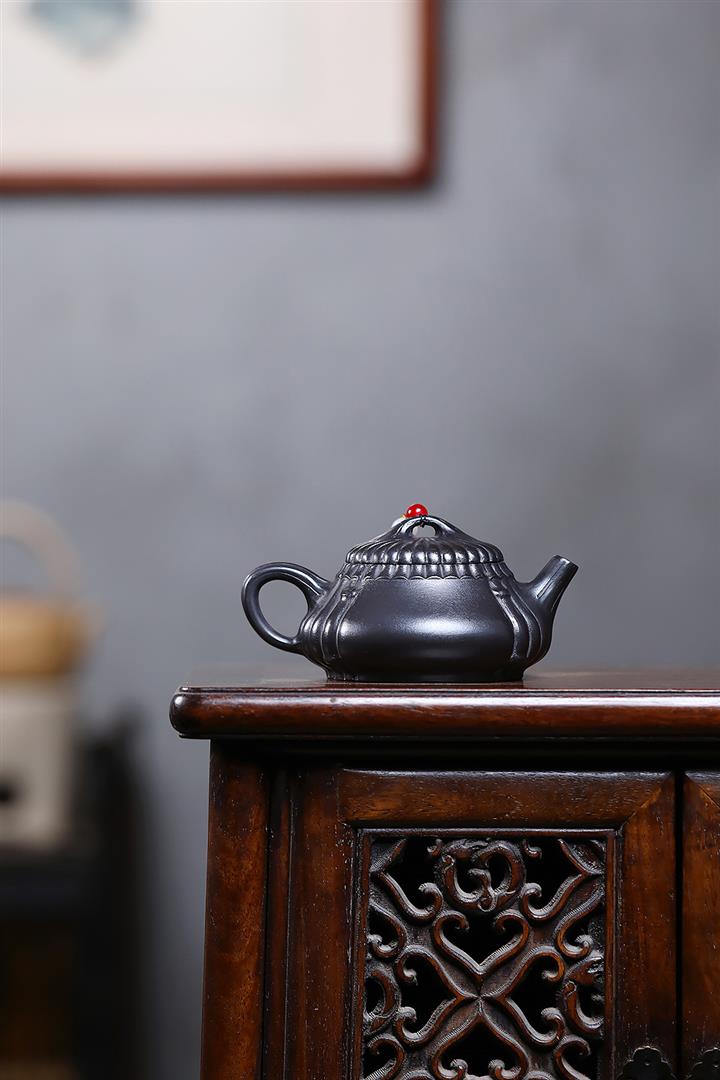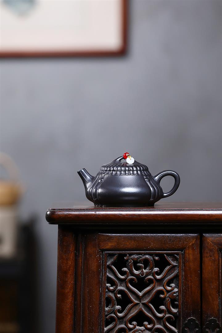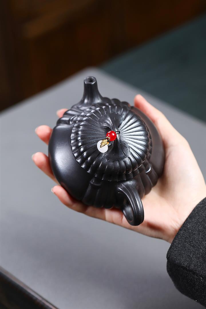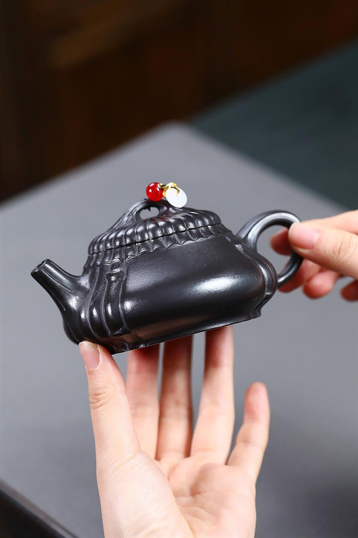 210cc原礦玄鐵石黃太湖石漢瓦泡茶壺POT9602