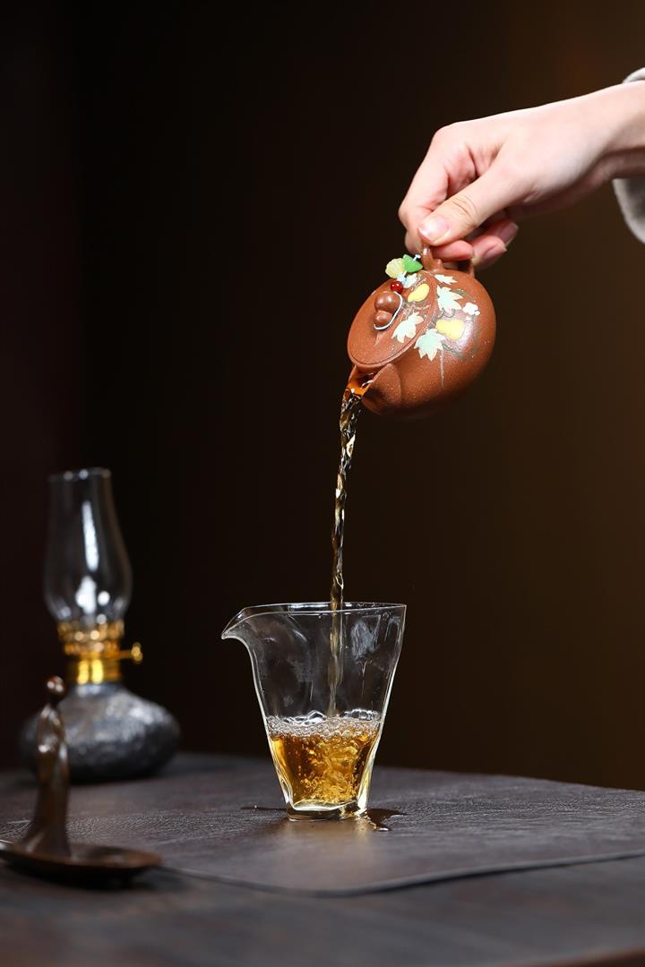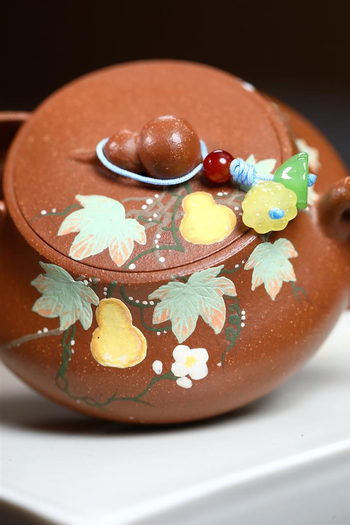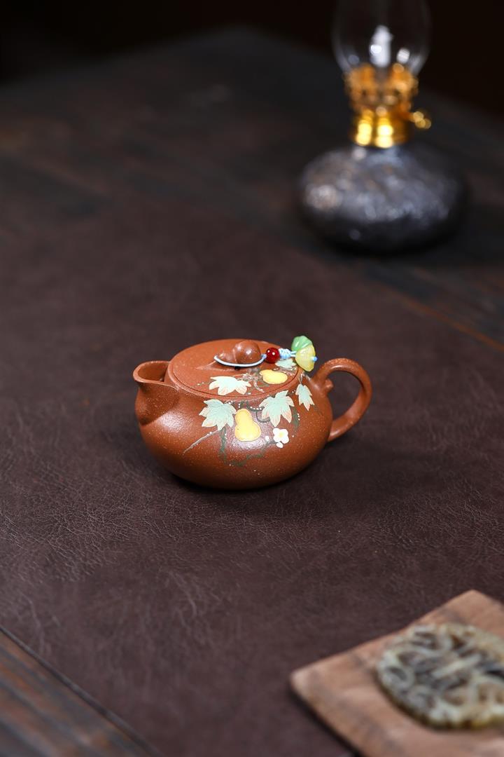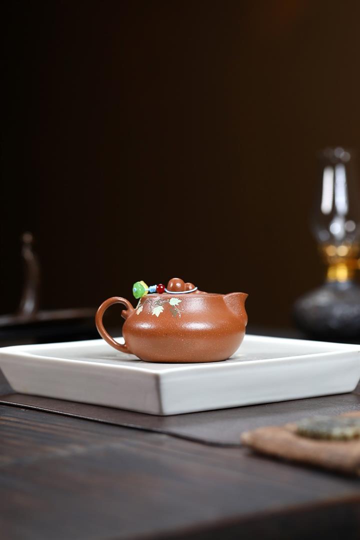 【泥料特點】砂土氣重,似淳實農民,日久使用,漸露鋒芒,養成變化,溫潤莊重。紫砂是壹種雙重氣孔結構的多孔性材質,氣孔微細,密度高。用紫砂壺沏茶,不失原味,且香不渙散,得茶之真香真味。紫砂使用越久,壺身色澤越發光亮照人,氣韻溫雅。紫砂壺長久使用器身會因撫摸擦拭,變得越發溫潤光澤。