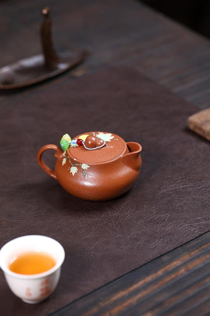 150cc原礦茄皮紫泥錦鯉寒江泡茶壺POT9616
