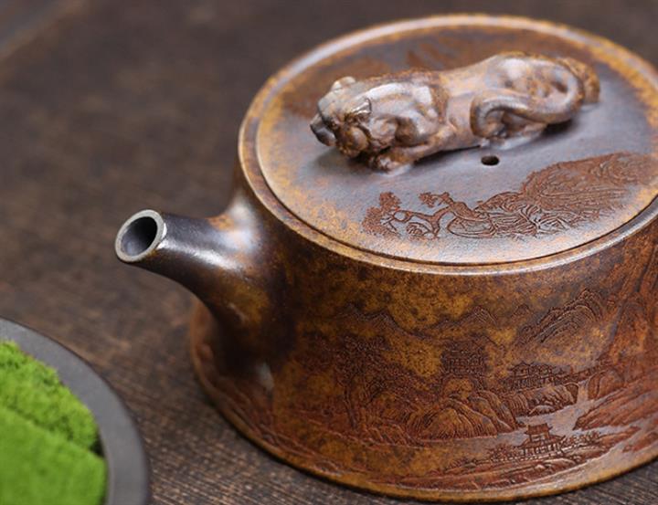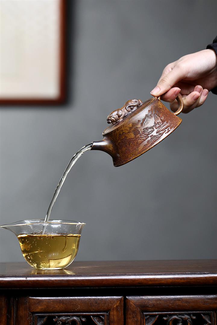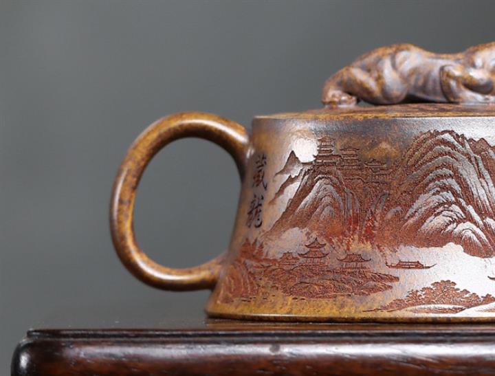 【泥料特點】砂土氣重,似淳實農民,日久使用,漸露鋒芒,養成變化,溫潤莊重。紫砂是壹種雙重氣孔結構的多孔性材質,氣孔微細,密度高。用紫砂壺沏茶,不失原味,且香不渙散,得茶之真香真味。紫砂使用越久,壺身色澤越發光亮照人,氣韻溫雅。紫砂壺長久使用器身會因撫摸擦拭,變得越發溫潤光澤。