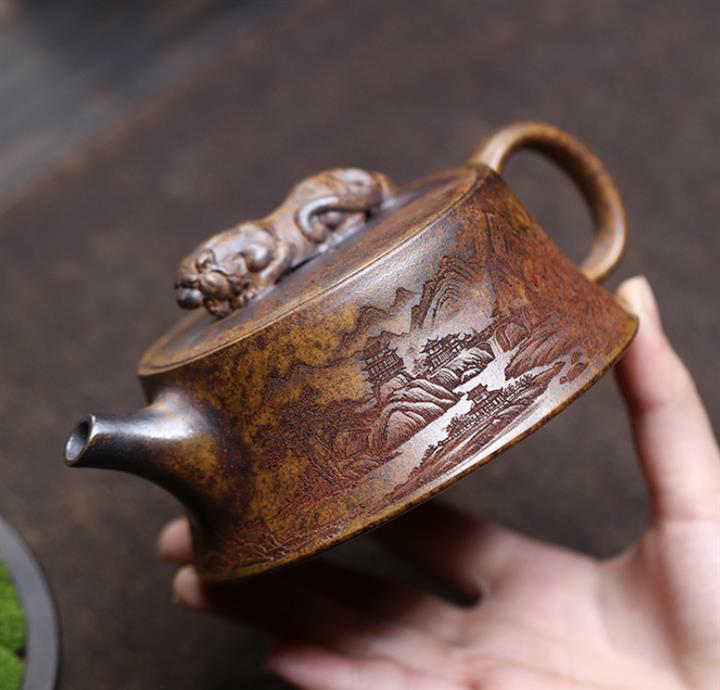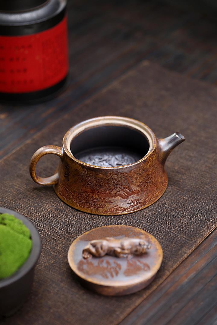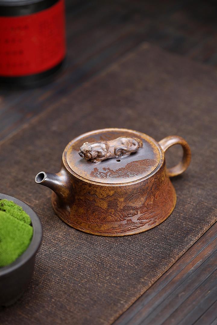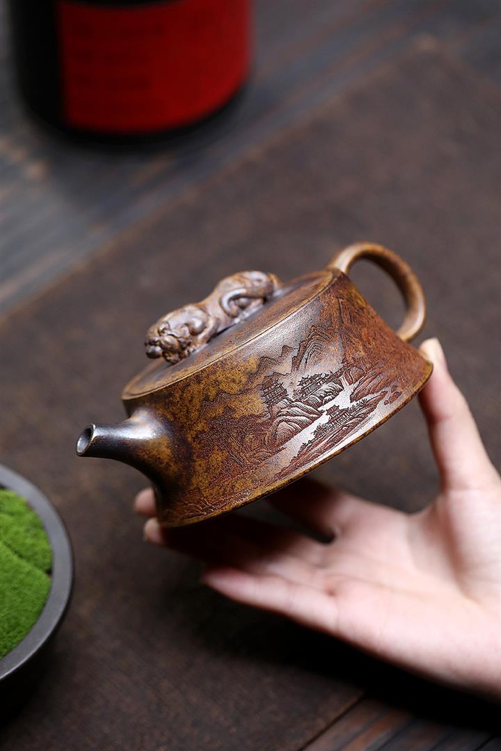 150cc原礦茄皮紫泥錦鯉寒江泡茶壺POT9616