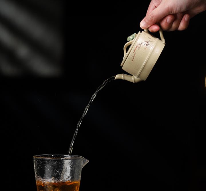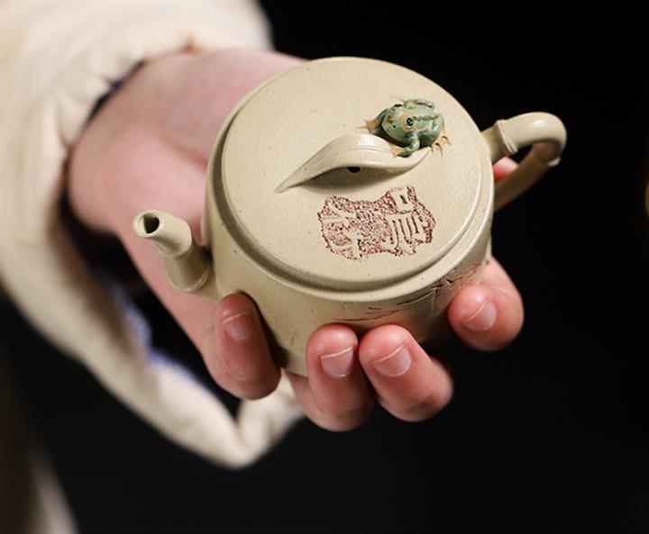 【泥料特點】砂土氣重,似淳實農民,日久使用,漸露鋒芒,養成變化,溫潤莊重。紫砂是壹種雙重氣孔結構的多孔性材質,氣孔微細,密度高。用紫砂壺沏茶,不失原味,且香不渙散,得茶之真香真味。紫砂使用越久,壺身色澤越發光亮照人,氣韻溫雅。紫砂壺長久使用器身會因撫摸擦拭,變得越發溫潤光澤。