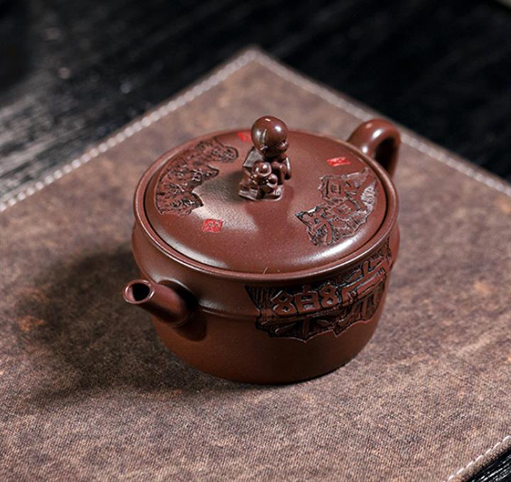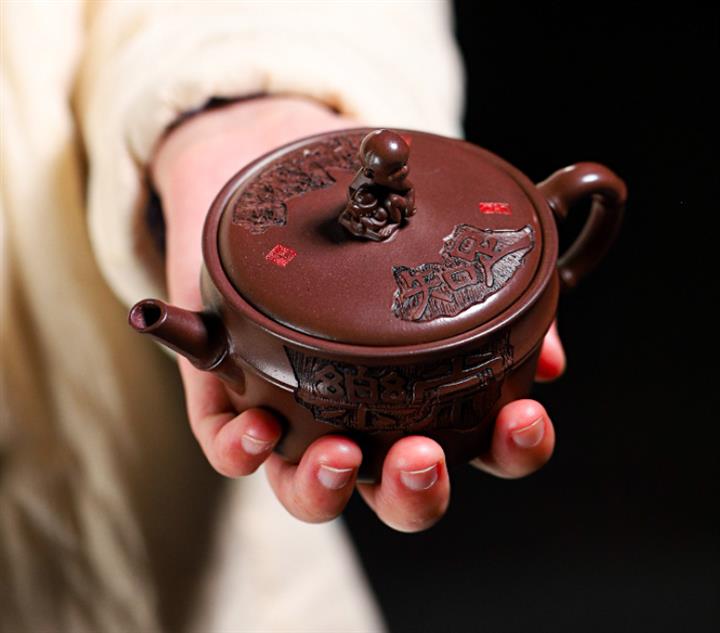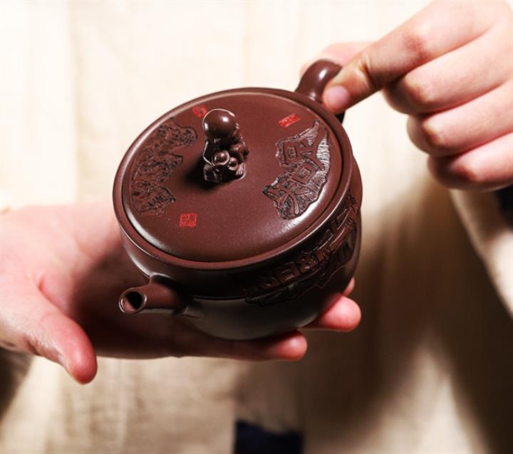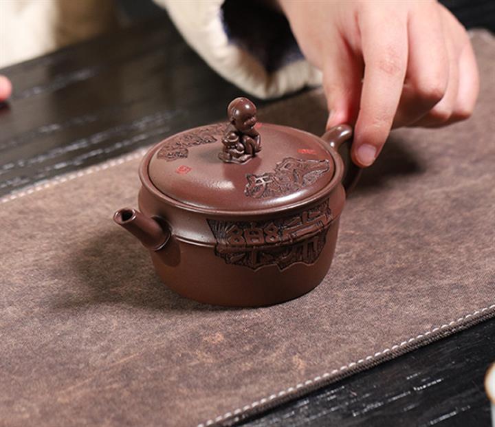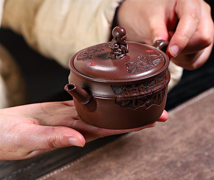 340cc龍骨金砂高溫柴燒百福提梁遇水變色泡茶壺POT9630