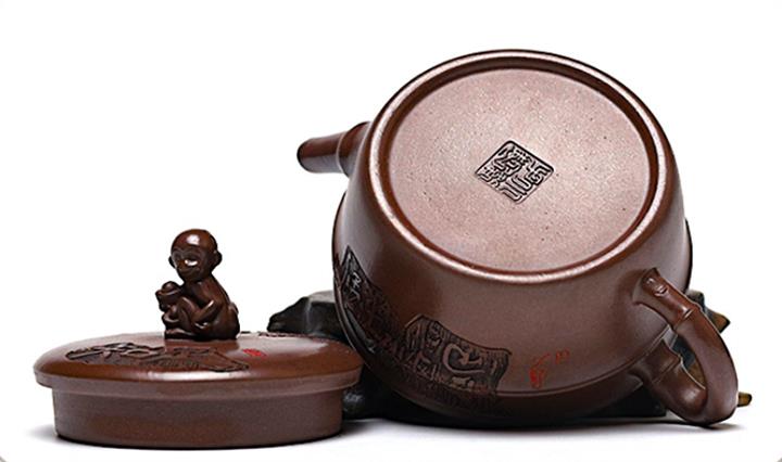 【泥料特點】砂土氣重,似淳實農民,日久使用,漸露鋒芒,養成變化,溫潤莊重。紫砂是壹種雙重氣孔結構的多孔性材質,氣孔微細,密度高。用紫砂壺沏茶,不失原味,且香不渙散,得茶之真香真味。紫砂使用越久,壺身色澤越發光亮照人,氣韻溫雅。紫砂壺長久使用器身會因撫摸擦拭,變得越發溫潤光澤。