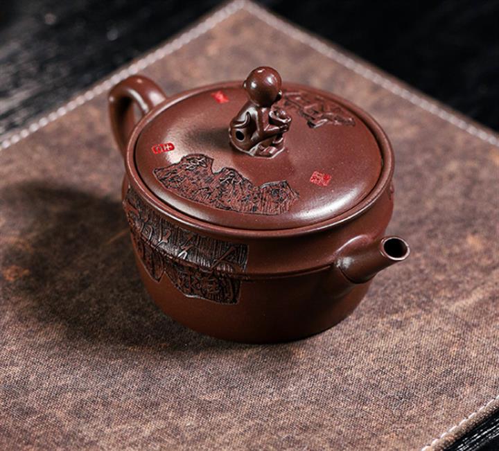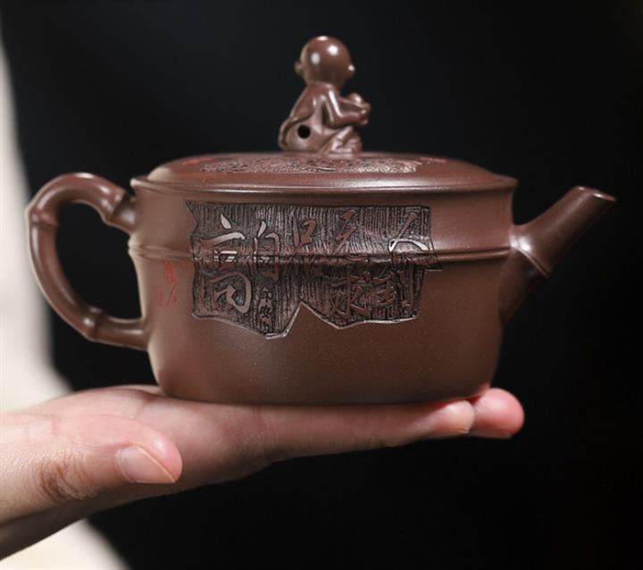 380cc原礦紫玉金砂紫玉竹影明爐泡茶壺POT9626