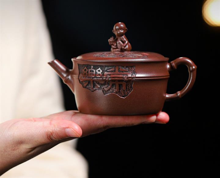 【作品介紹】此款壺形線條流暢,壺把,壺嘴,壺身壹氣呵成栩栩如生,是收藏把玩的好壺,泥料色澤古樸典雅,日久使用,漸露鋒芒,養成變化快,溫潤莊重,用其泡茶,使用的年代久,壺身就溫潤,泡出來的茶湯也就醇郁芳馨。