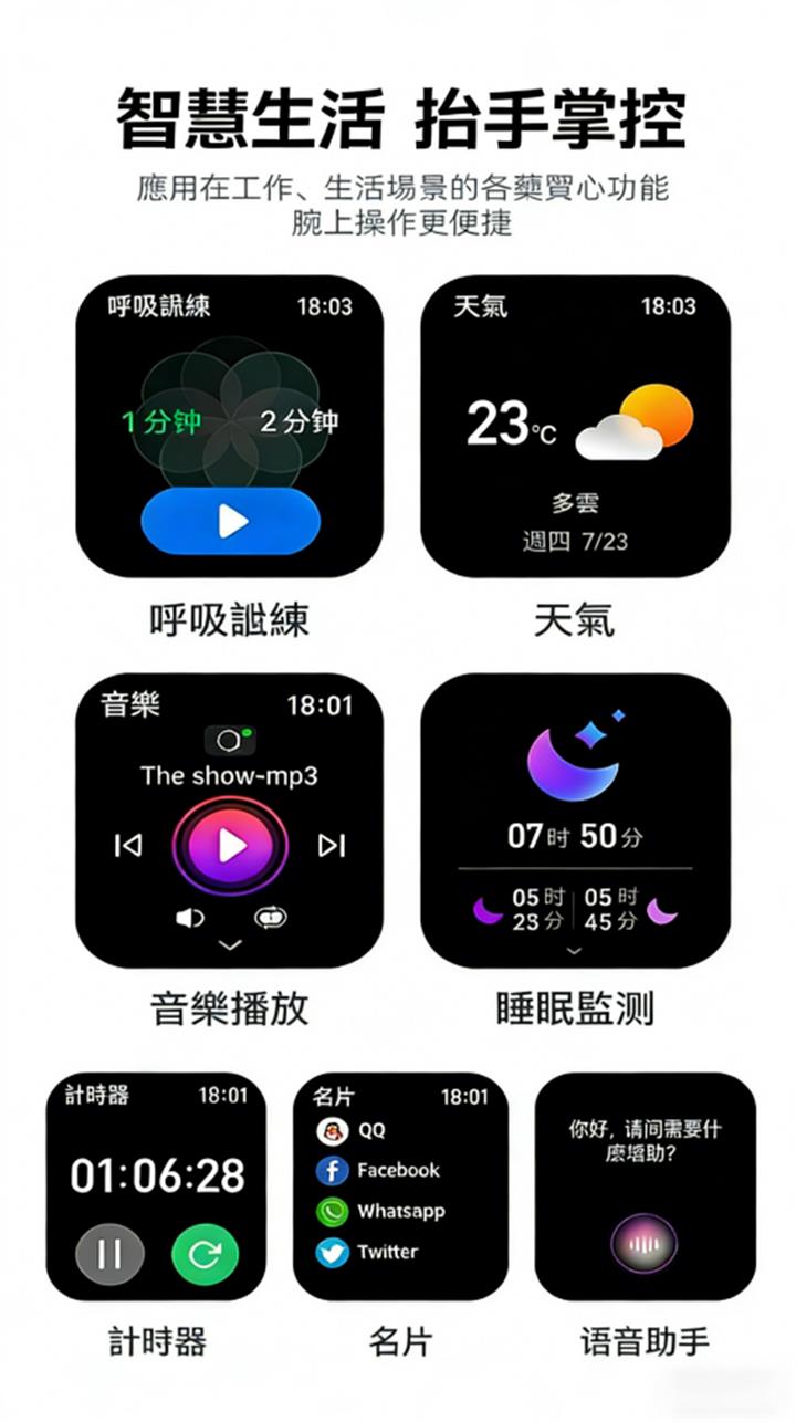 音樂天氣健康監測智能手錶