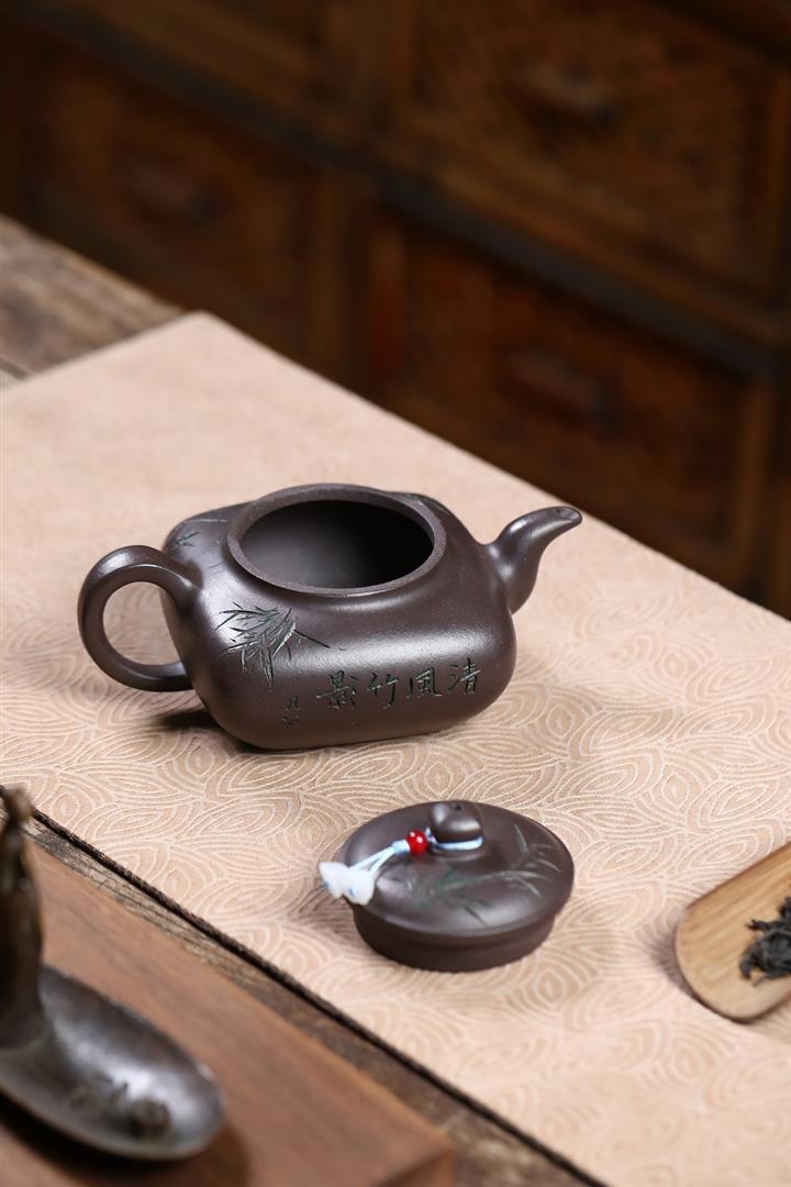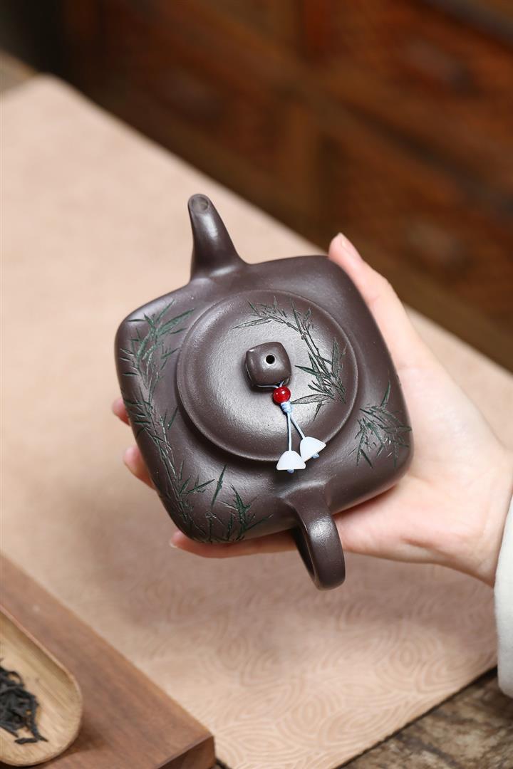 240cc古龍窯柴燒龍骨金砂四方刻竹泡茶壺POT9631