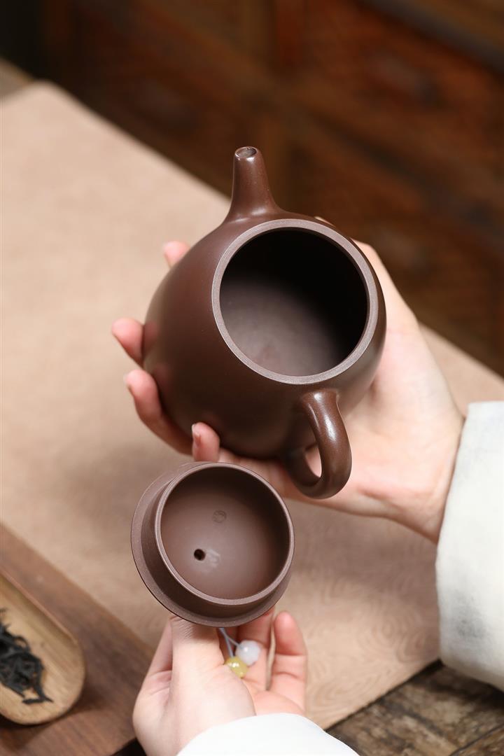 【作品介紹】此款壺形線條流暢,壺把,壺嘴,壺身壹氣呵成栩栩如生,是收藏把玩的好壺,泥料色澤古樸典雅,日久使用,漸露鋒芒,養成變化快,溫潤莊重,用其泡茶,使用的年代久,壺身就溫潤,泡出來的茶湯也就醇郁芳馨。