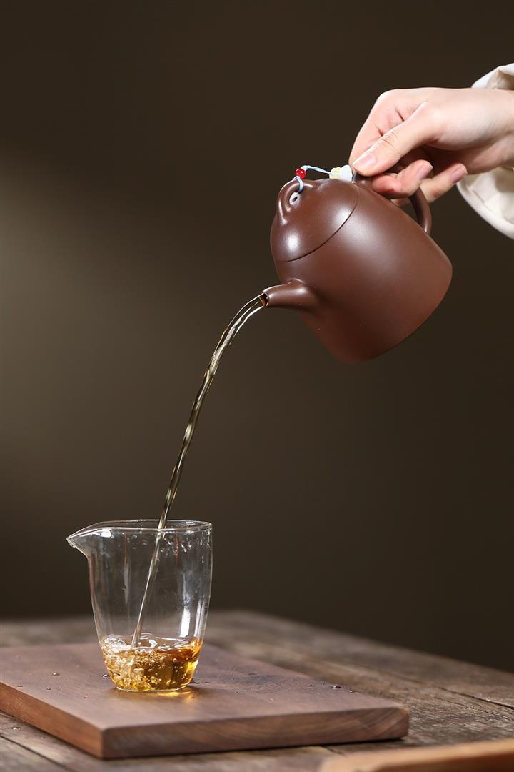 【泥料特點】砂土氣重,似淳實農民,日久使用,漸露鋒芒,養成變化,溫潤莊重。紫砂是壹種雙重氣孔結構的多孔性材質,氣孔微細,密度高。用紫砂壺沏茶,不失原味,且香不渙散,得茶之真香真味。紫砂使用越久,壺身色澤越發光亮照人,氣韻溫雅。紫砂壺長久使用器身會因撫摸擦拭,變得越發溫潤光澤。