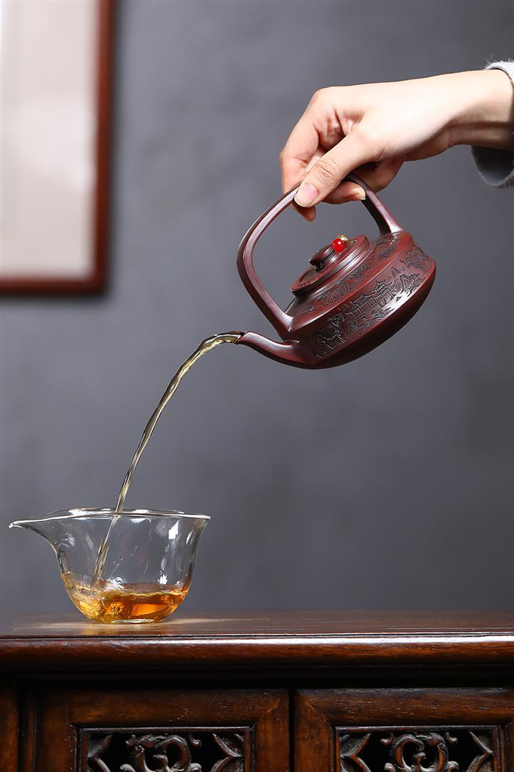 【泥料特點】砂土氣重,似淳實農民,日久使用,漸露鋒芒,養成變化,溫潤莊重。紫砂是壹種雙重氣孔結構的多孔性材質,氣孔微細,密度高。用紫砂壺沏茶,不失原味,且香不渙散,得茶之真香真味。紫砂使用越久,壺身色澤越發光亮照人,氣韻溫雅。紫砂壺長久使用器身會因撫摸擦拭,變得越發溫潤光澤。