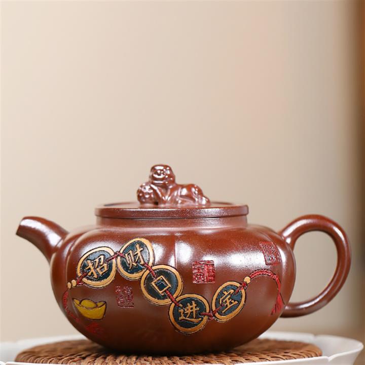 270cc原礦段泥火焰燒招財進寶-獅球泡茶壺POT9645