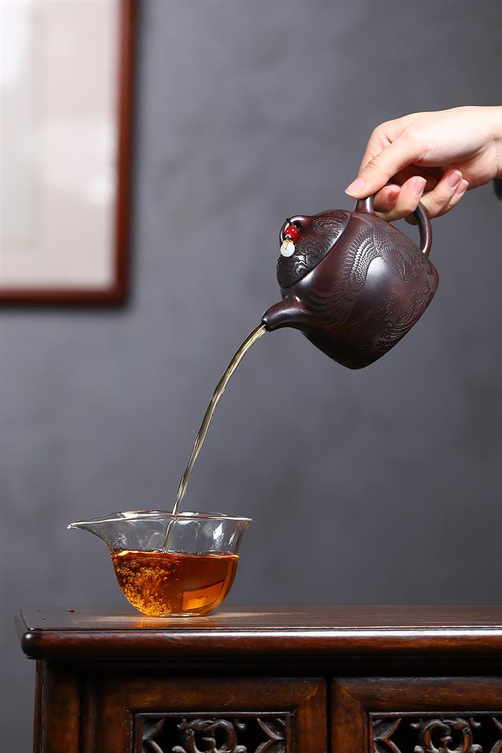 【泥料特點】砂土氣重,似淳實農民,日久使用,漸露鋒芒,養成變化,溫潤莊重。紫砂是壹種雙重氣孔結構的多孔性材質,氣孔微細,密度高。用紫砂壺沏茶,不失原味,且香不渙散,得茶之真香真味。紫砂使用越久,壺身色澤越發光亮照人,氣韻溫雅。紫砂壺長久使用器身會因撫摸擦拭,變得越發溫潤光澤。