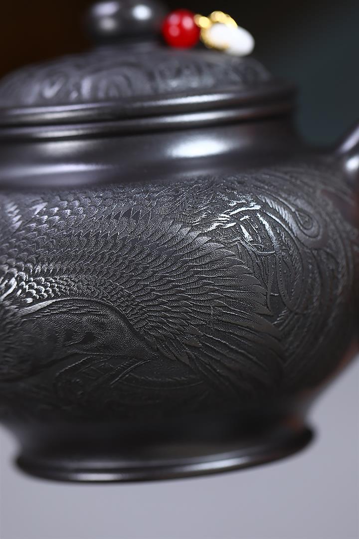 310cc原礦家藏青段高溫燒事事如意泡茶壺POT9644