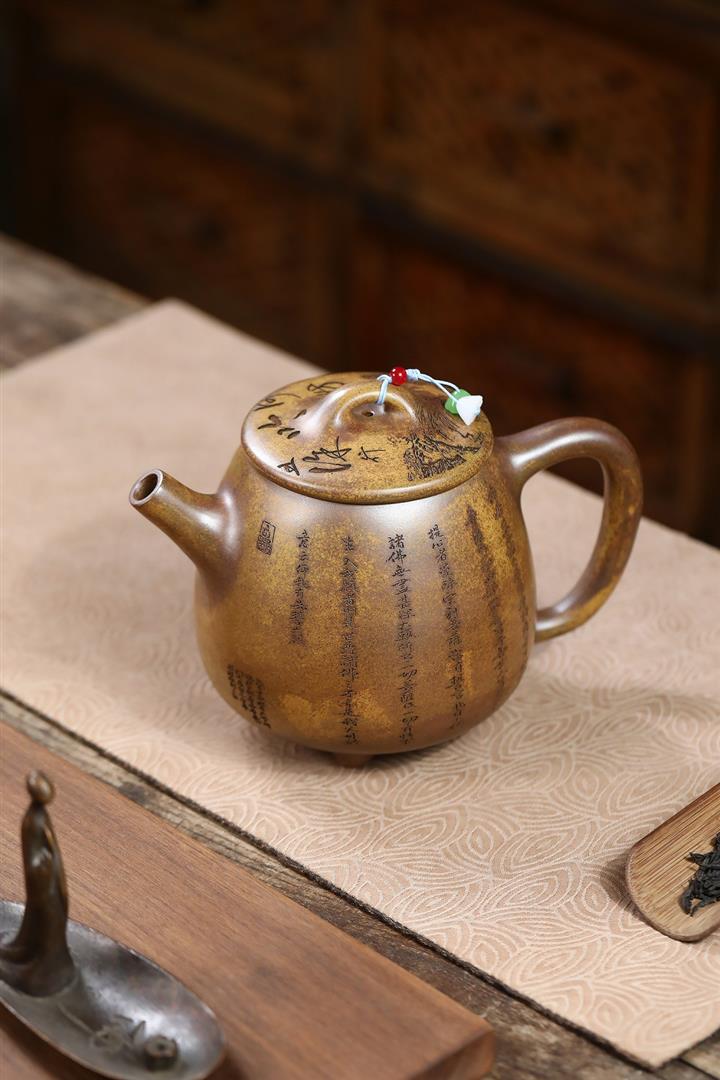 310cc原礦家藏青段高溫燒事事如意泡茶壺POT9644