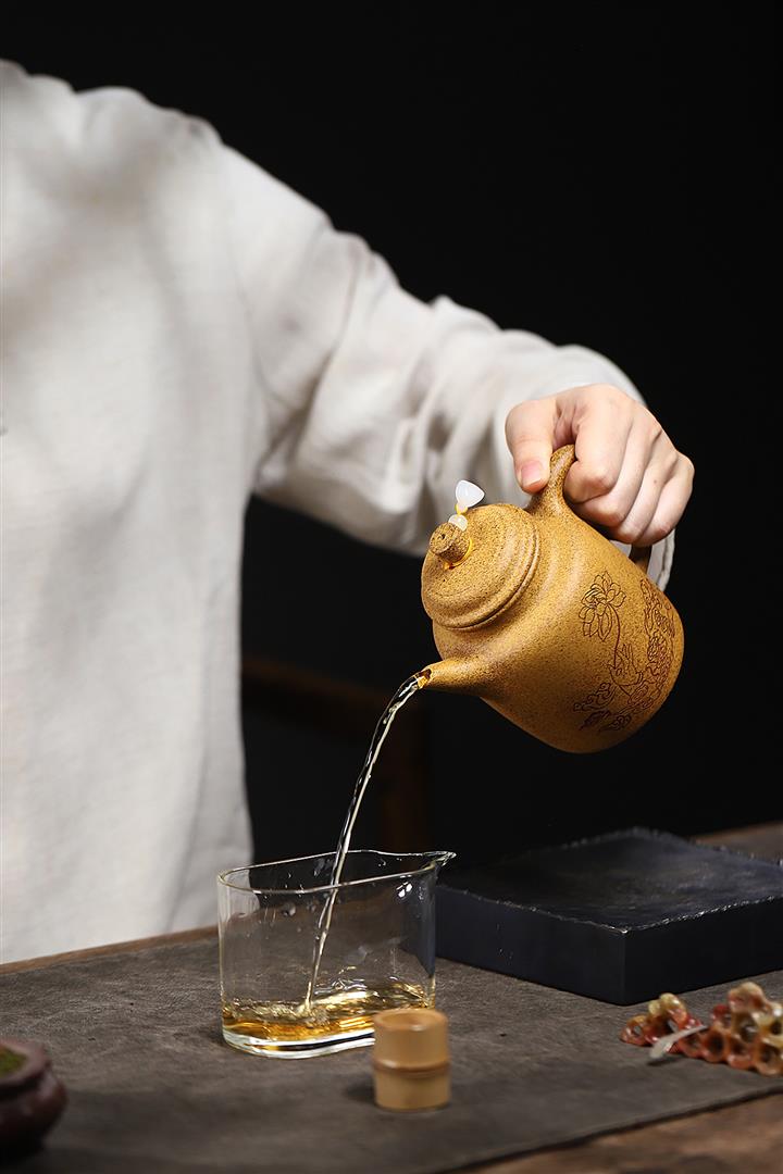 【泥料特點】砂土氣重,似淳實農民,日久使用,漸露鋒芒,養成變化,溫潤莊重。紫砂是壹種雙重氣孔結構的多孔性材質,氣孔微細,密度高。用紫砂壺沏茶,不失原味,且香不渙散,得茶之真香真味。紫砂使用越久,壺身色澤越發光亮照人,氣韻溫雅。紫砂壺長久使用器身會因撫摸擦拭,變得越發溫潤光澤。