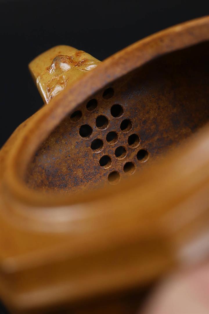 【泥料特點】砂土氣重,似淳實農民,日久使用,漸露鋒芒,養成變化,溫潤莊重。紫砂是壹種雙重氣孔結構的多孔性材質,氣孔微細,密度高。用紫砂壺沏茶,不失原味,且香不渙散,得茶之真香真味。紫砂使用越久,壺身色澤越發光亮照人,氣韻溫雅。紫砂壺長久使用器身會因撫摸擦拭,變得越發溫潤光澤。
