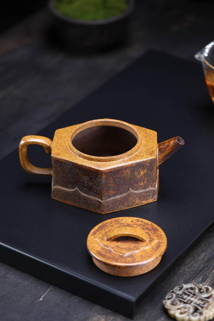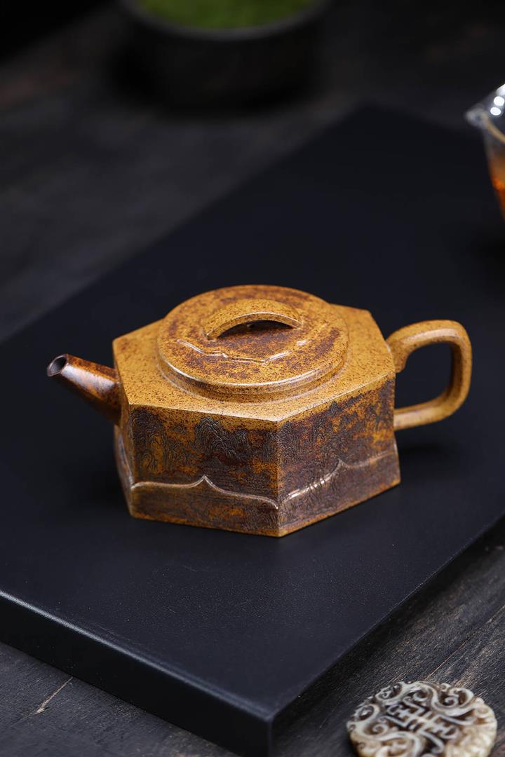 320cc原礦龍骨金砂特高溫燒菱方泡茶壺POT9648