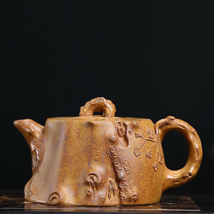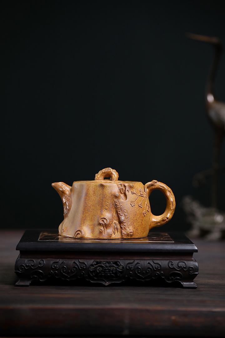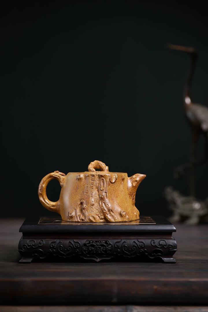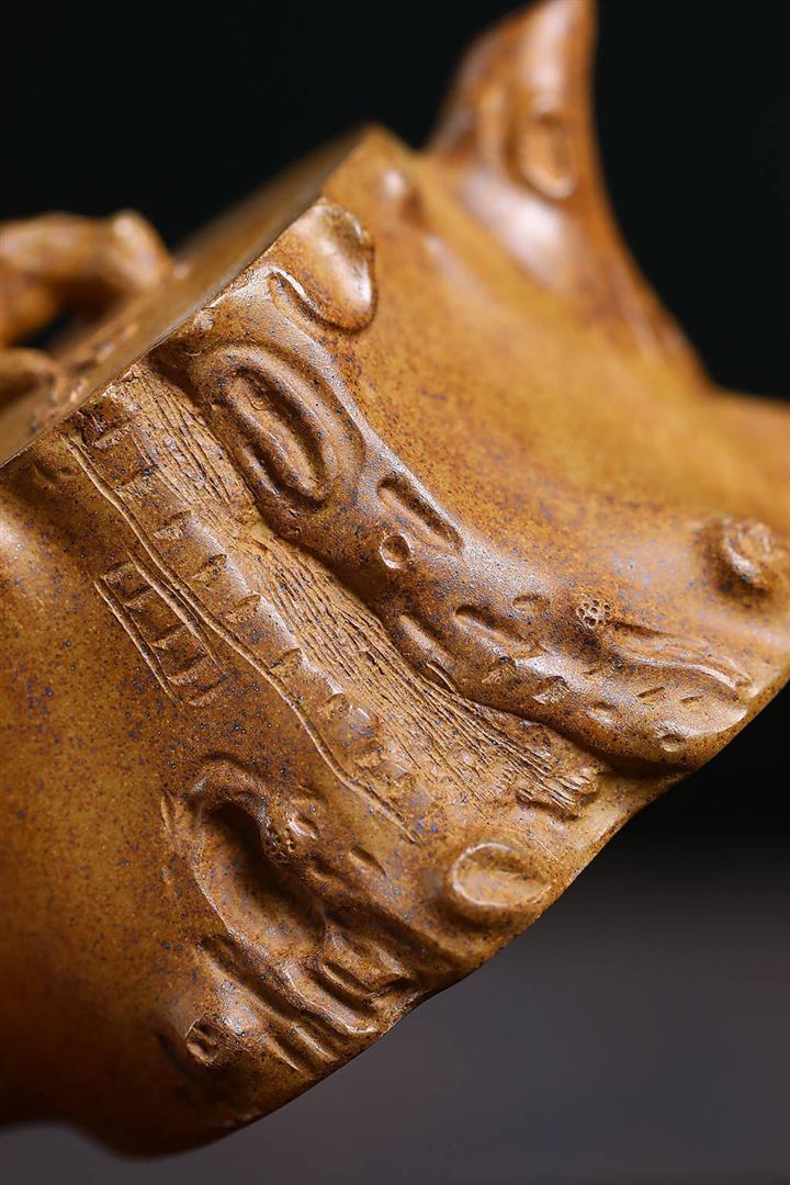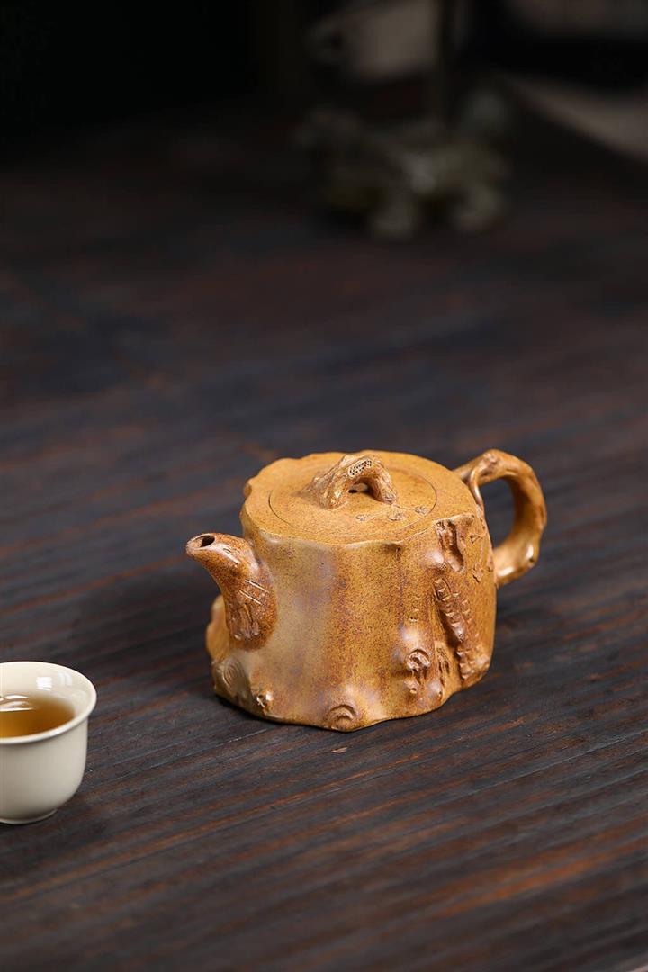 280cc原礦龍骨金沙特高溫柴燒四方竹鼎泡茶壺POT9661