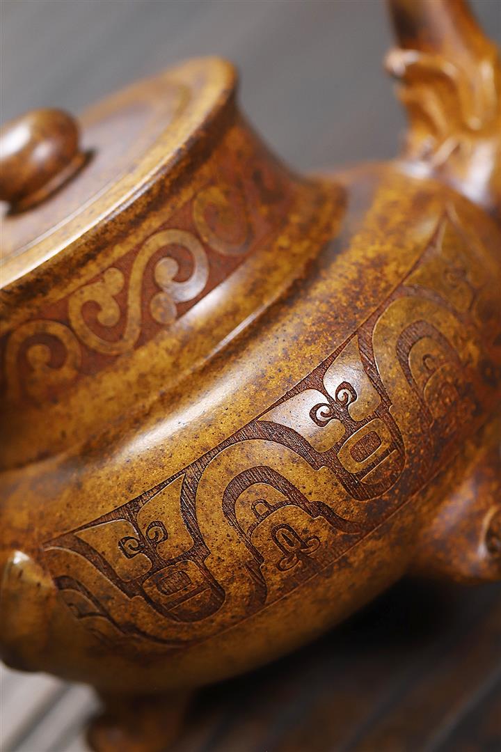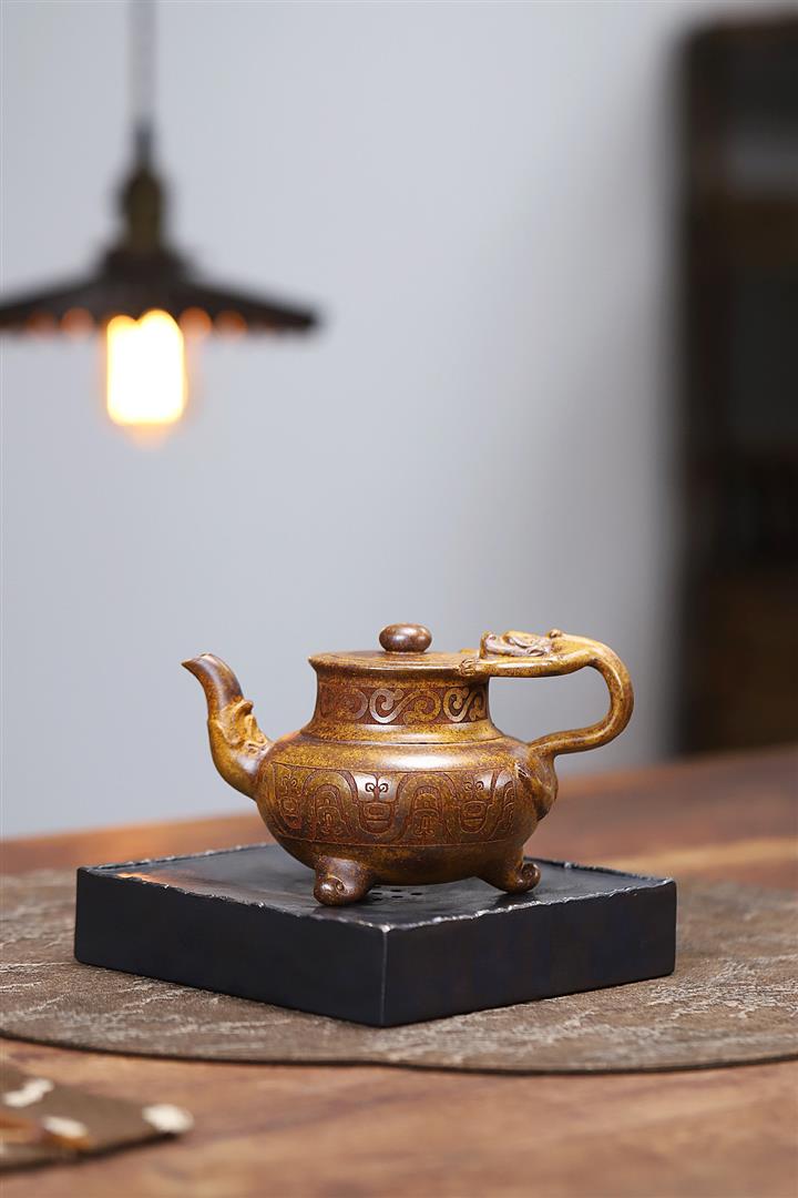 280cc原礦龍骨金沙特高溫柴燒四方竹鼎泡茶壺POT9661
