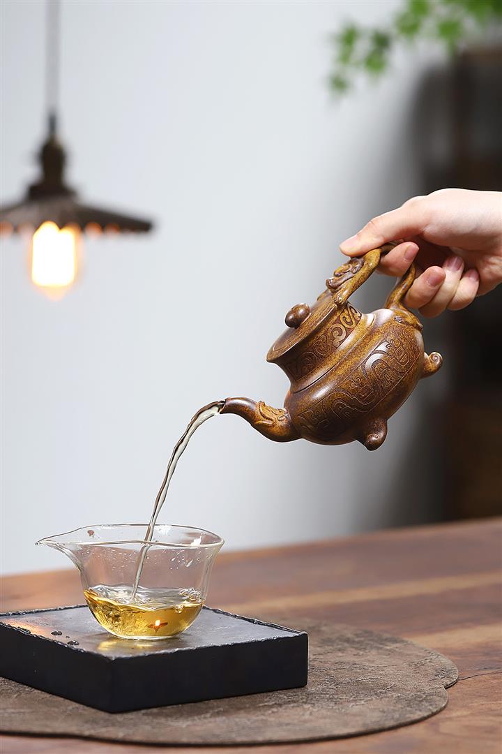 【作品介紹】此款壺形線條流暢,壺把,壺嘴,壺身壹氣呵成栩栩如生,是收藏把玩的好壺,泥料色澤古樸典雅,日久使用,漸露鋒芒,養成變化快,溫潤莊重,用其泡茶,使用的年代久,壺身就溫潤,泡出來的茶湯也就醇郁芳馨。
