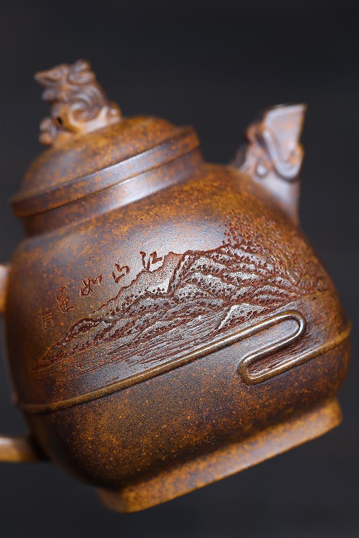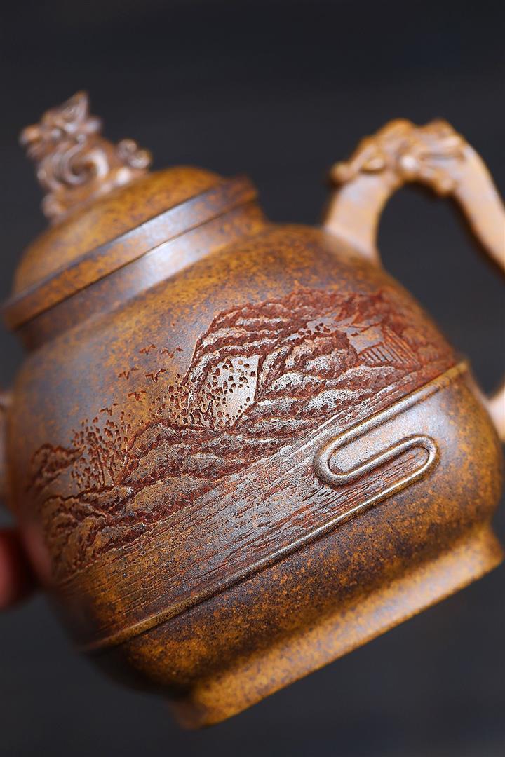 420cc龍窯柴燒鐵紅古烏泥龍鳳呈祥泡茶壺POT9662