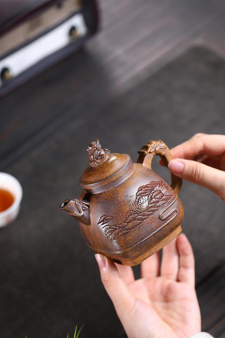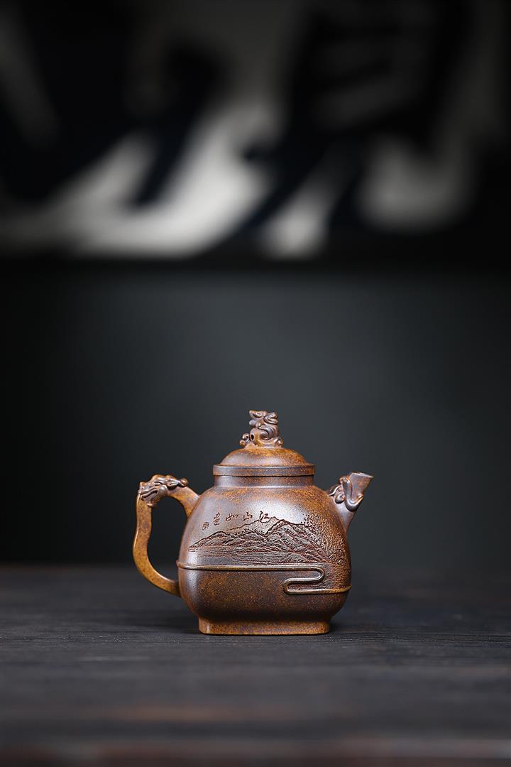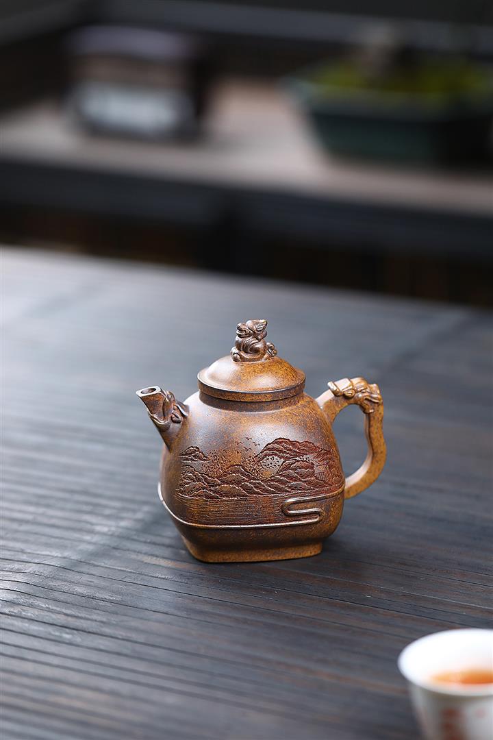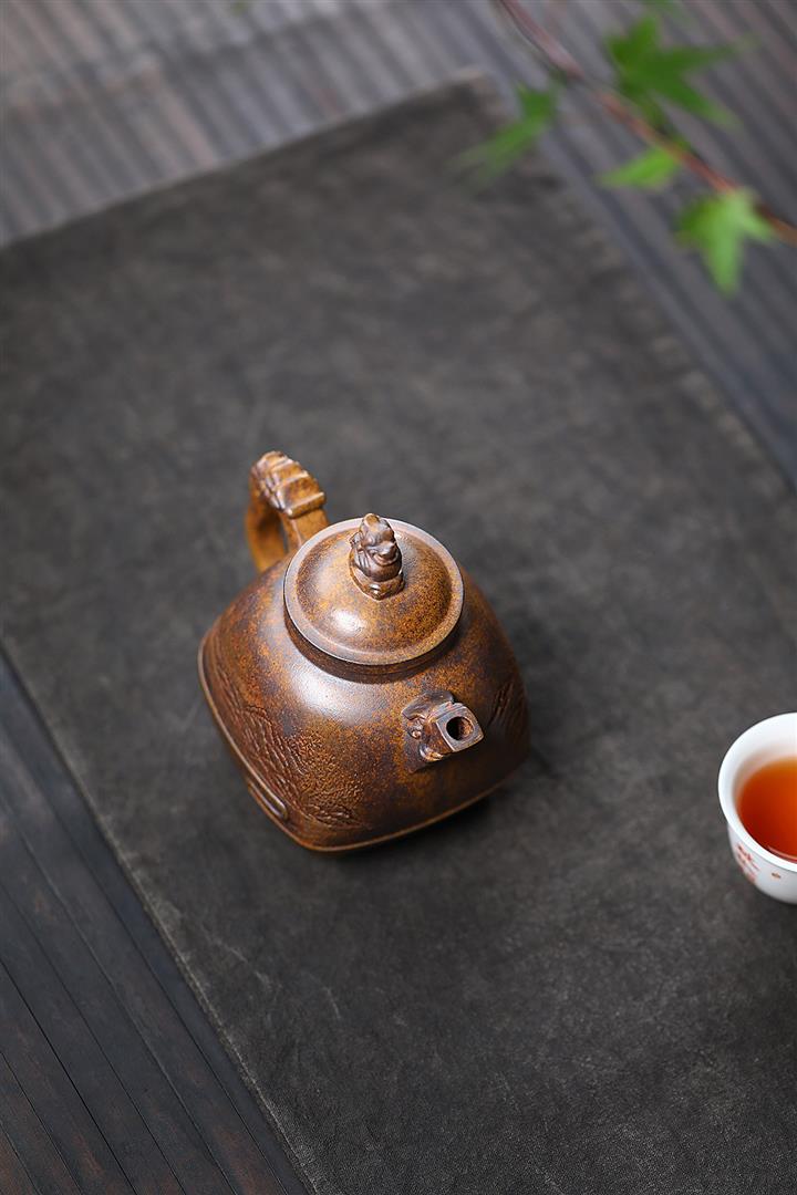 280cc原礦龍骨金沙特高溫柴燒四方竹鼎泡茶壺POT9661