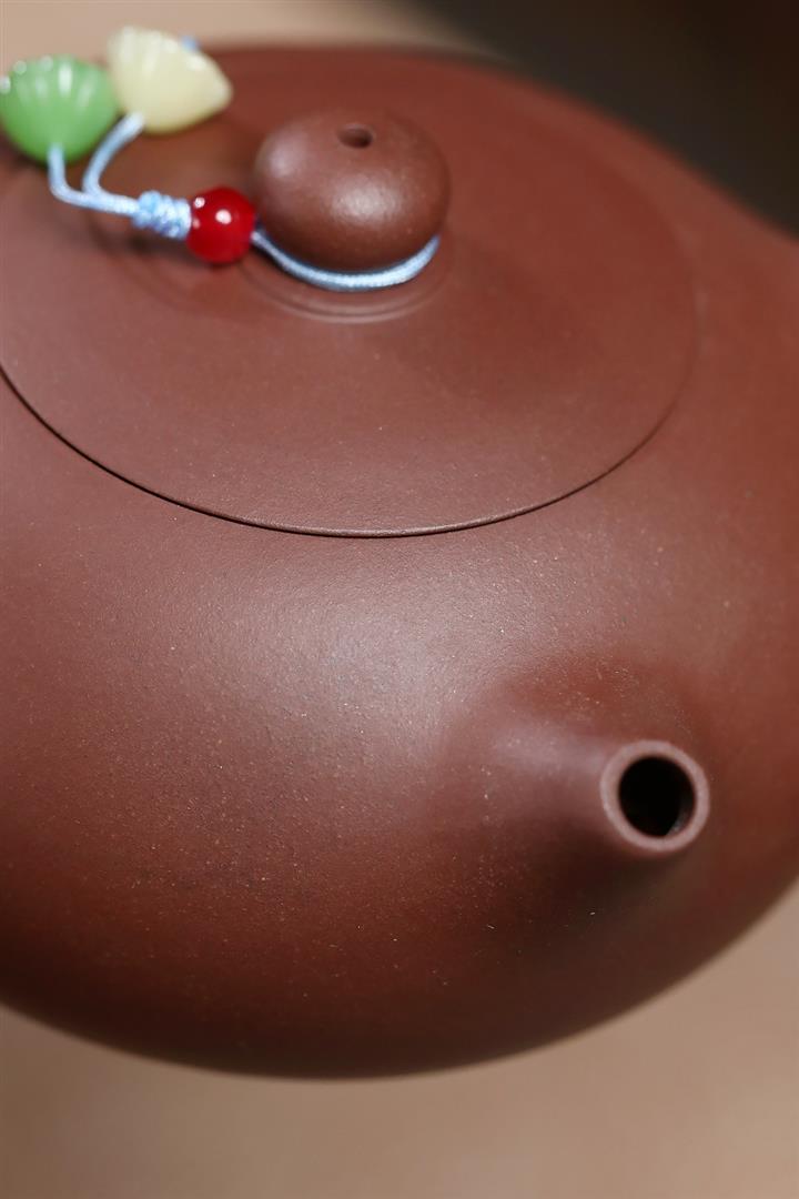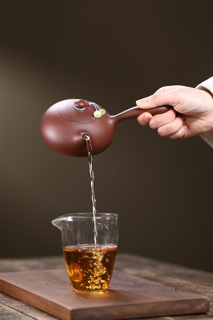 【泥料特點】砂土氣重,似淳實農民,日久使用,漸露鋒芒,養成變化,溫潤莊重。紫砂是壹種雙重氣孔結構的多孔性材質,氣孔微細,密度高。用紫砂壺沏茶,不失原味,且香不渙散,得茶之真香真味。紫砂使用越久,壺身色澤越發光亮照人,氣韻溫雅。紫砂壺長久使用器身會因撫摸擦拭,變得越發溫潤光澤。