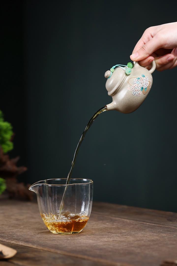 【泥料特點】砂土氣重,似淳實農民,日久使用,漸露鋒芒,養成變化,溫潤莊重。紫砂是壹種雙重氣孔結構的多孔性材質,氣孔微細,密度高。用紫砂壺沏茶,不失原味,且香不渙散,得茶之真香真味。紫砂使用越久,壺身色澤越發光亮照人,氣韻溫雅。紫砂壺長久使用器身會因撫摸擦拭,變得越發溫潤光澤。