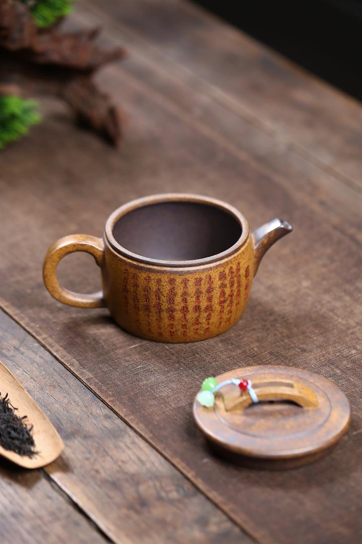 220cc原礦大紅袍描金暗香虛扁泡茶壺POT9694