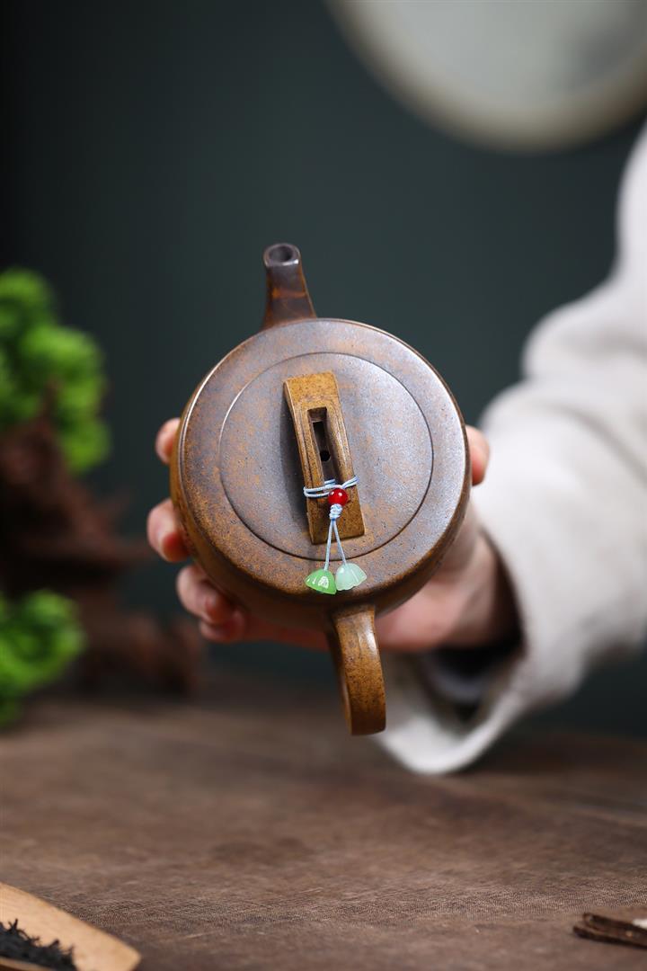380cc原礦玄鐵石黃金蟾牛蓋漢瓦泡茶壺POT9692