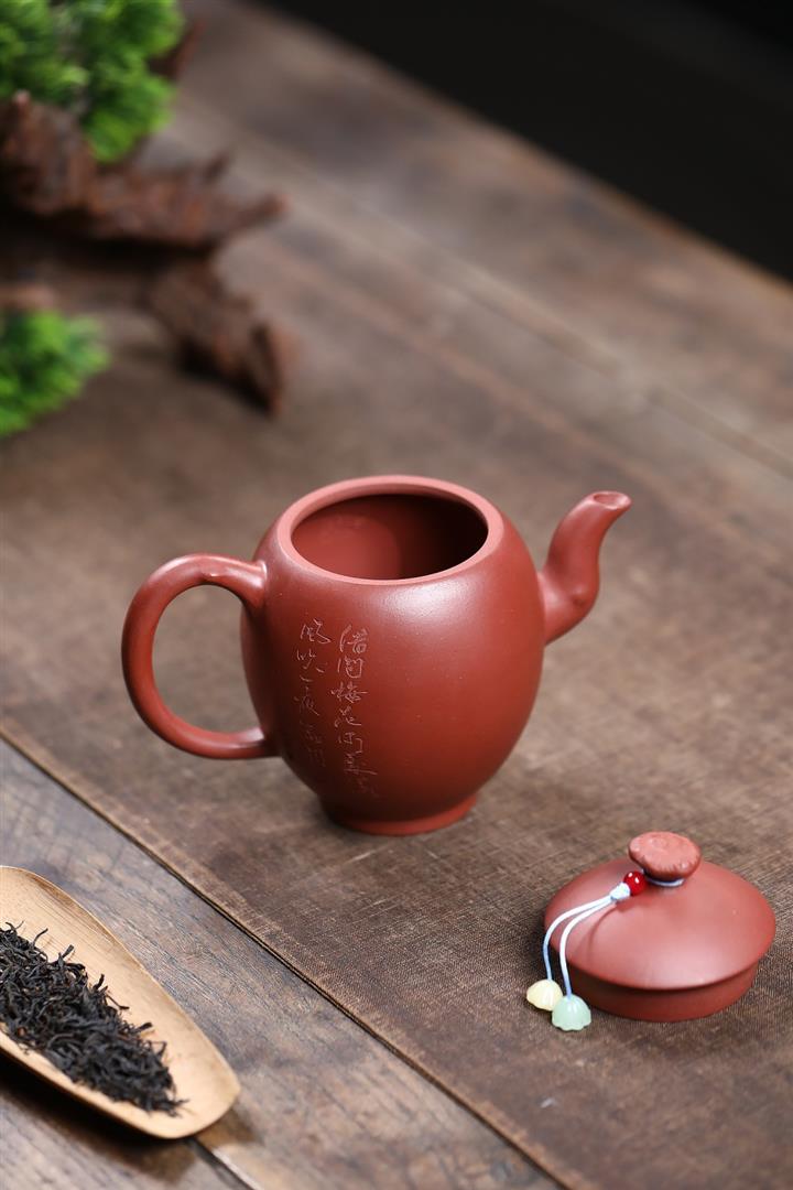280cc原礦大紅袍堆繪金梅秦權泡茶壺POT9695