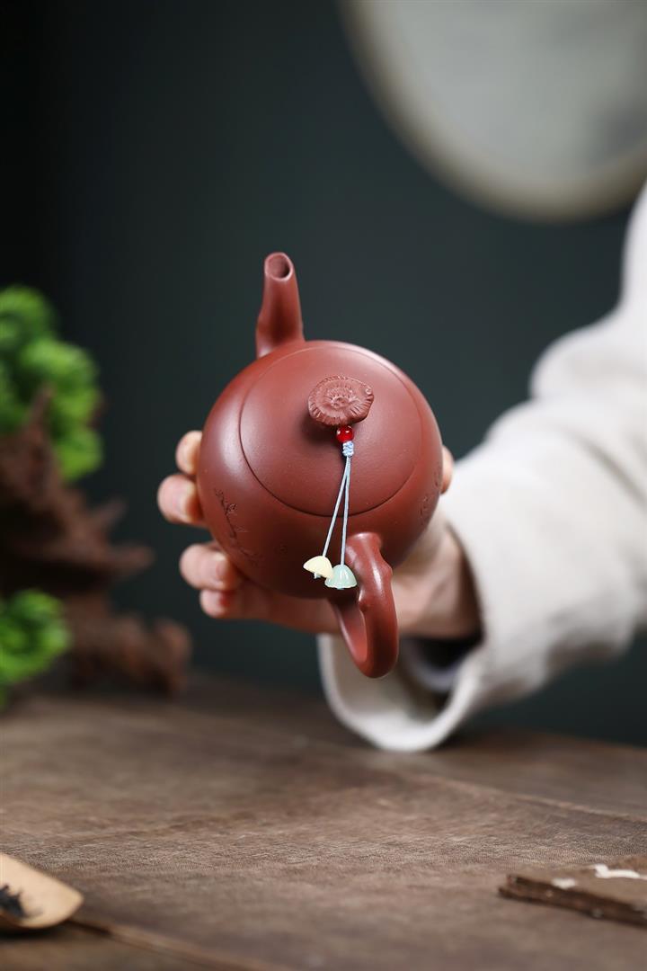 【泥料特點】砂土氣重,似淳實農民,日久使用,漸露鋒芒,養成變化,溫潤莊重。紫砂是壹種雙重氣孔結構的多孔性材質,氣孔微細,密度高。用紫砂壺沏茶,不失原味,且香不渙散,得茶之真香真味。紫砂使用越久,壺身色澤越發光亮照人,氣韻溫雅。紫砂壺長久使用器身會因撫摸擦拭,變得越發溫潤光澤。